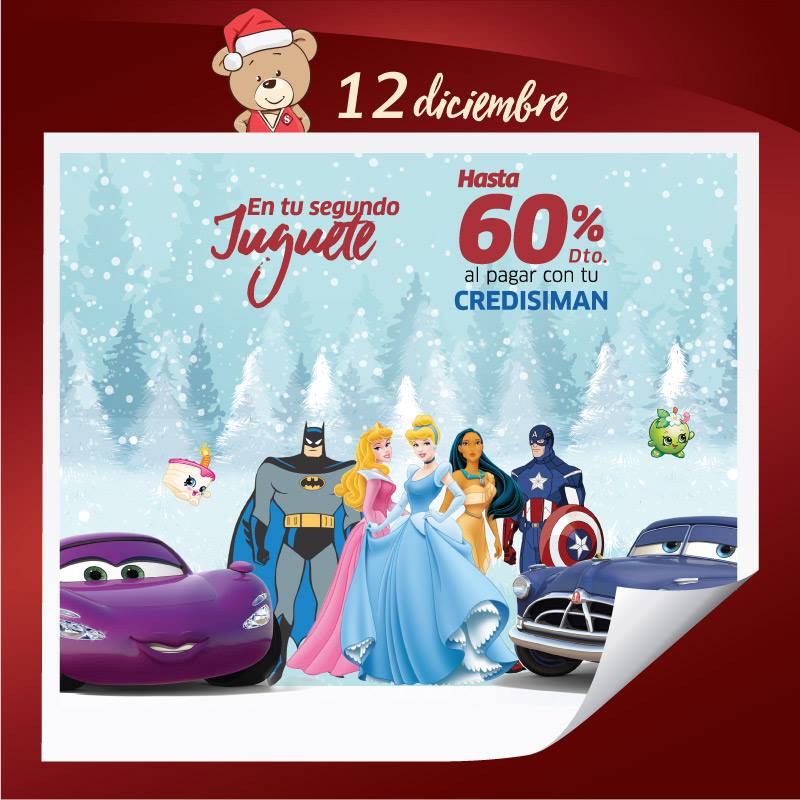 ¡Un detalle especial para los pequeños de casa! ???????? Hoy traemos para ti 60% de descuento al pagar con Credisiman en tu segundo juguete o 50% con otras formas de pago. ¡No te lo puedes perder! Más ???? *Válido 12 y 13 de diciembre 1027. No aplica en muñecas LOL, ni Hatchimals. Aplica en productos a precio regular.