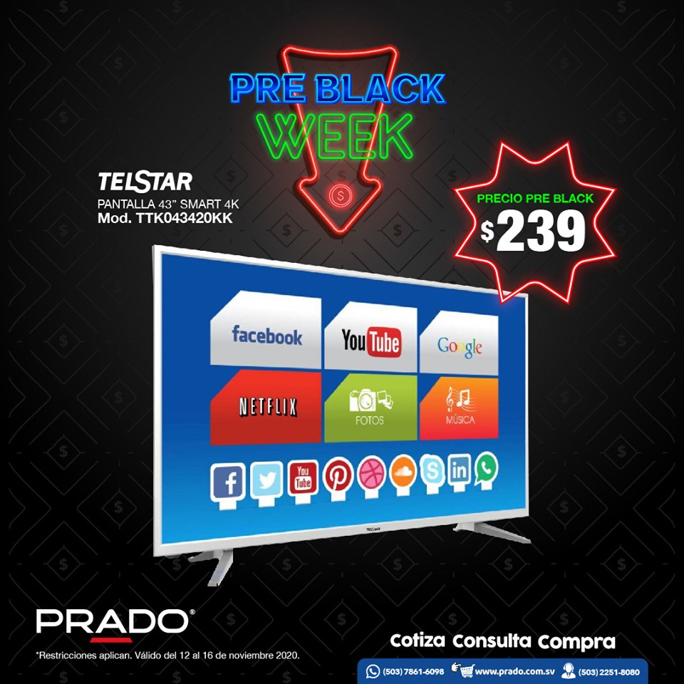 ¡El mueble que necesitabas para tu hogar lo encuentras en el Pre Black Week #PRADO! 😉😎¡La Pre Black Week de #PRADO te trae lo mejor en pantallas a precios espectaculares! 🖥😍🤩¡Comienza el Pre Black Week de #PRADO! Disfruta de los mejores precios en línea blanca. 😎😉