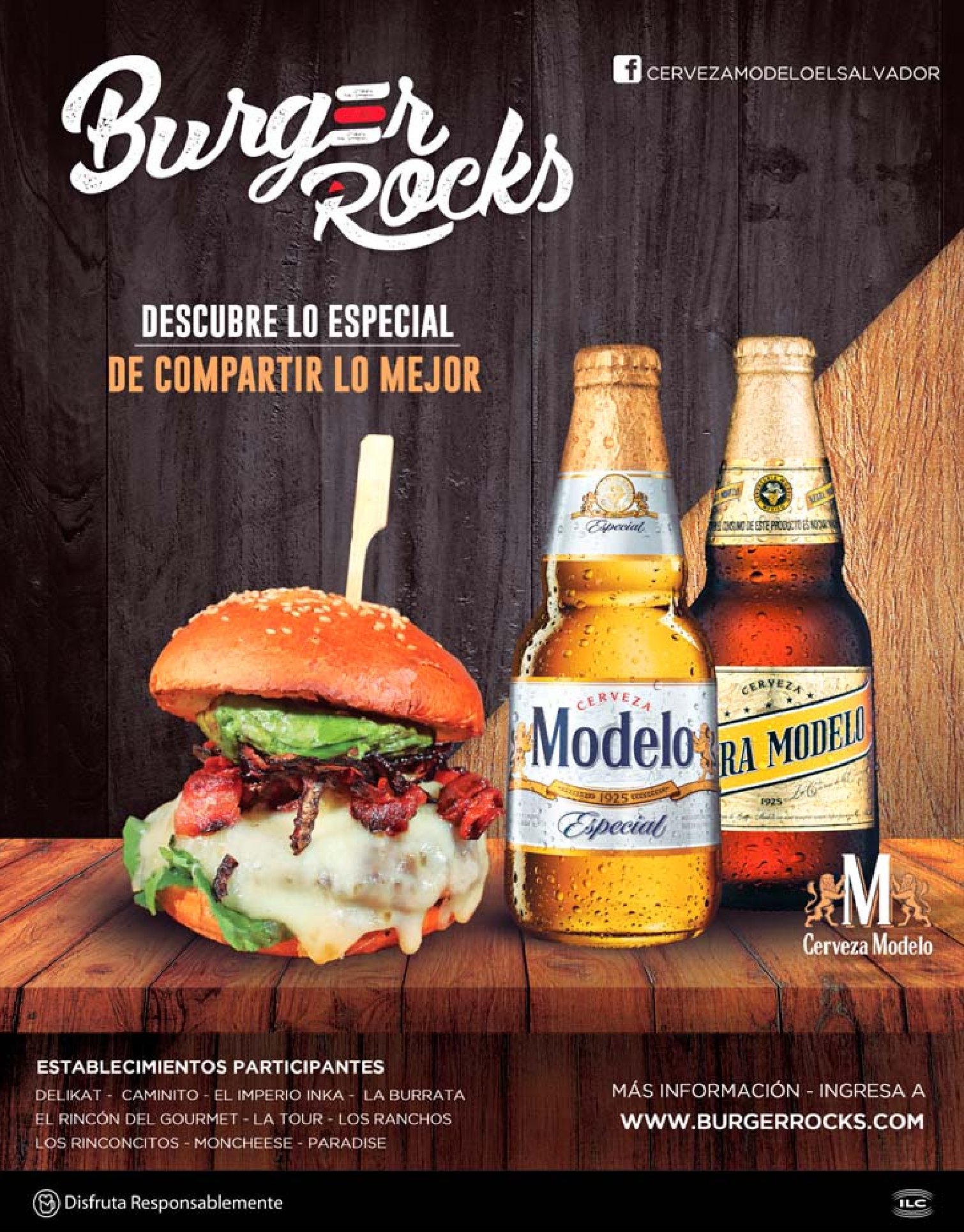 BURGERS ROCKS DISFRUTALA CON UNA CERVEZA MODELO.