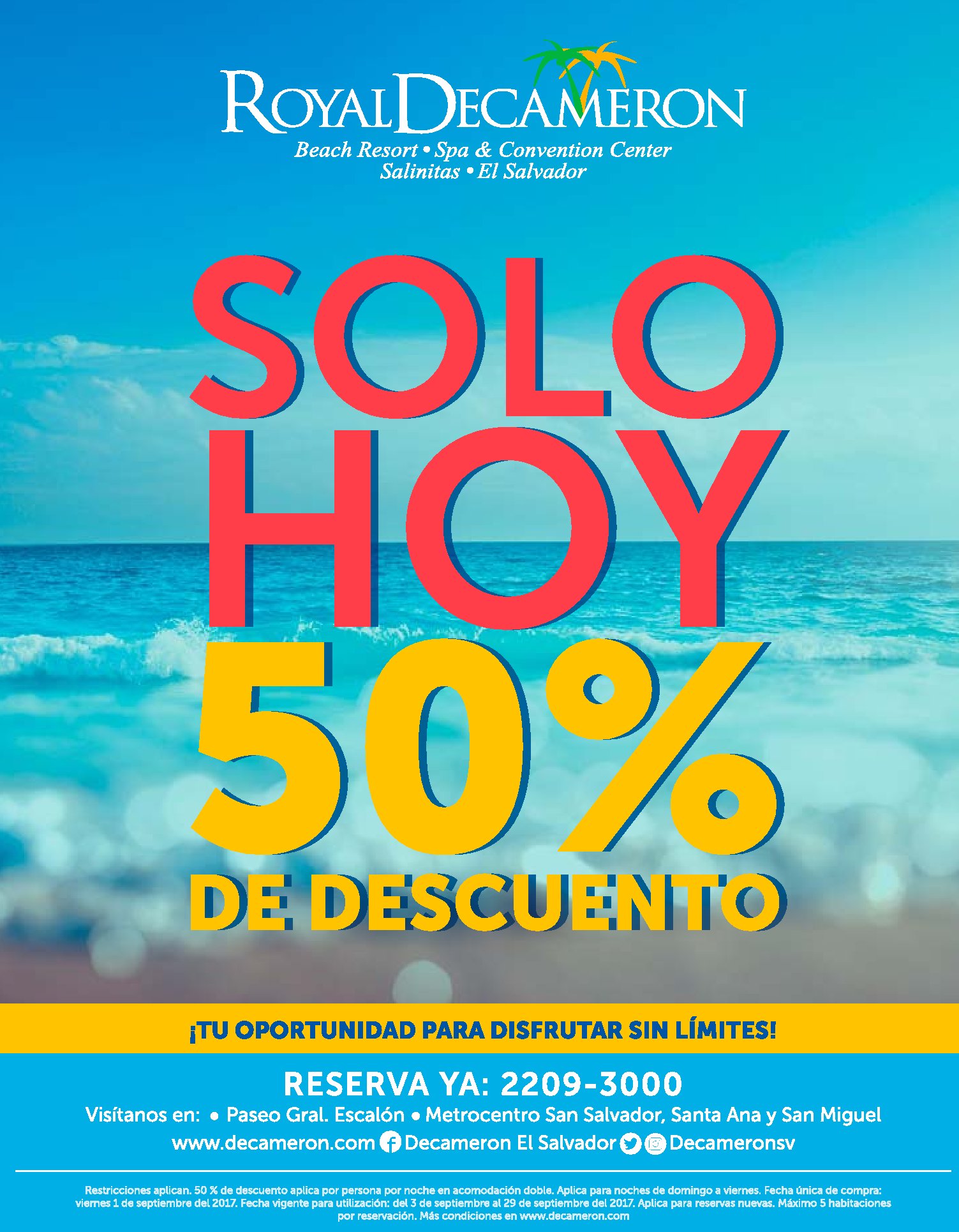 SOLO HOY 01 septiembre tus reservaciones decameron 50 off.