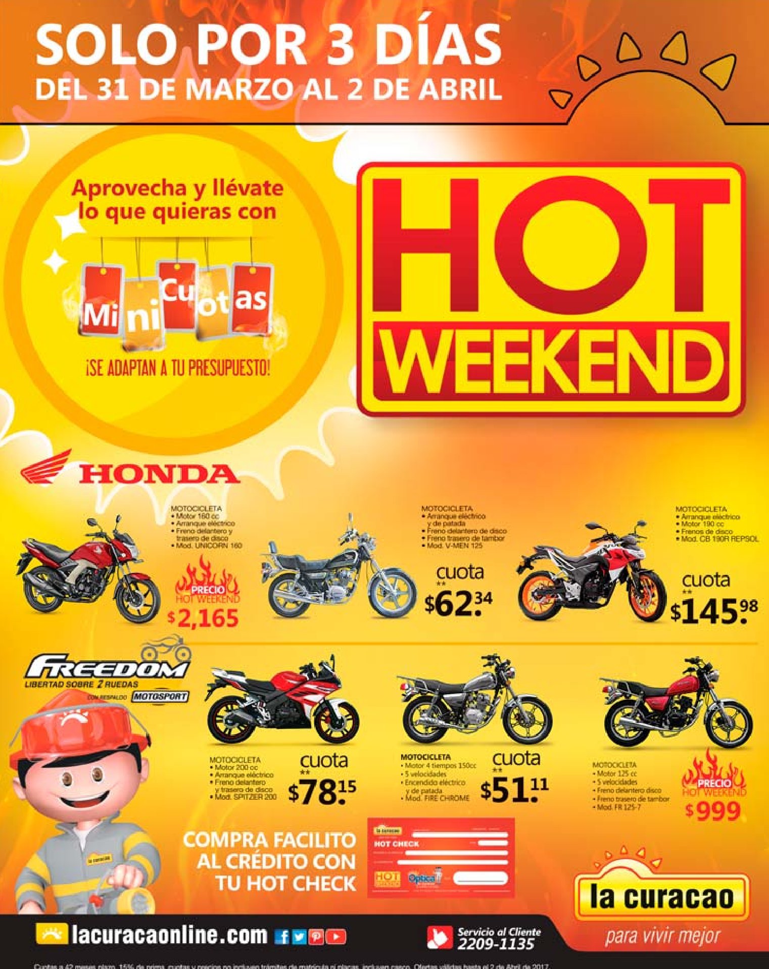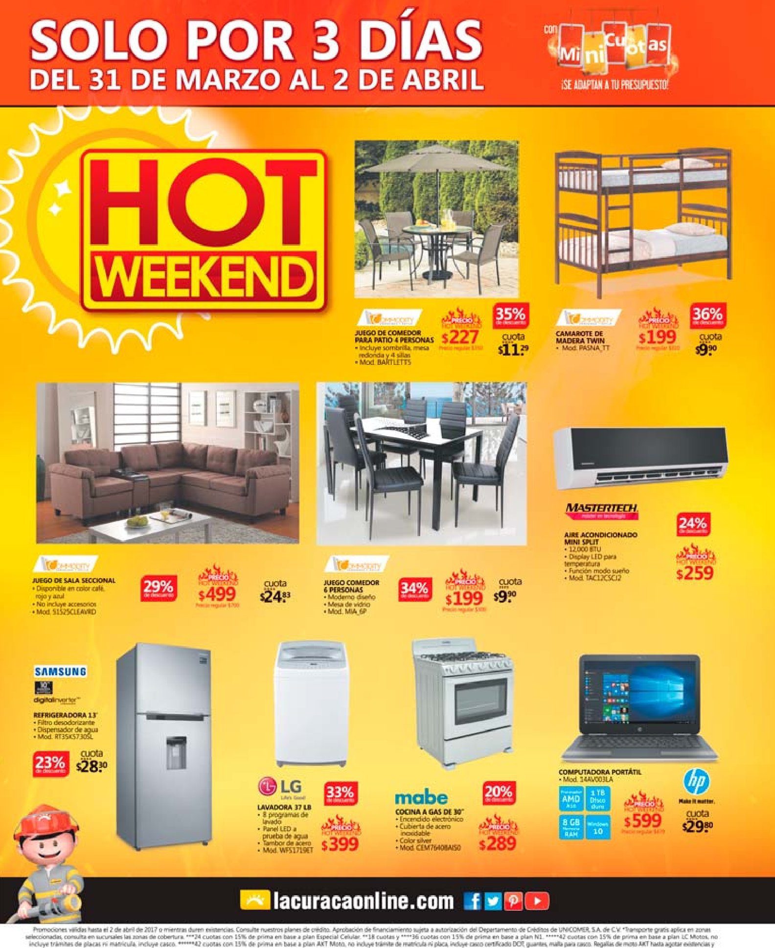 Tenemos TODAS las ofertas mas calientes en estos 3 dias de HOT WEEKEND 2017, no te perdas ningun detalle y cuidado con quemarte por que estan que arden. Acá te dejamos los horarios de nuestro HOT WEEKEND ???????? Aprovecha y compra pantallas, lavadoras, comedores, salas, smartphones y muchos productos con las OFERTAS más CALIENTES que nunca ???? Del 31 de marzo al 2 de abril, en TODAS nuestras sucursales ???????? ardientes Ofertas RADIO SHACK este finde hoy shack weekend 2017. Estas son las OFERTAS HOT WEEKEND 2017 de almacenes la curacao. La Curacao Descuentos SUPER CALIENTES que te van a gustar – 31mar17. LA CURACAO Ofertas en la linea de motocicletas HOT. Los 3 dias con las ofertas mas calientes. LOs precios mas calientes en tecnologia geek and gadgets. OPTICA La Curacao con promociones HOT WEEKEND 2017 hasta 70 OFF. Regresa a RADIOSHACK el hot weekend marzo 2017.