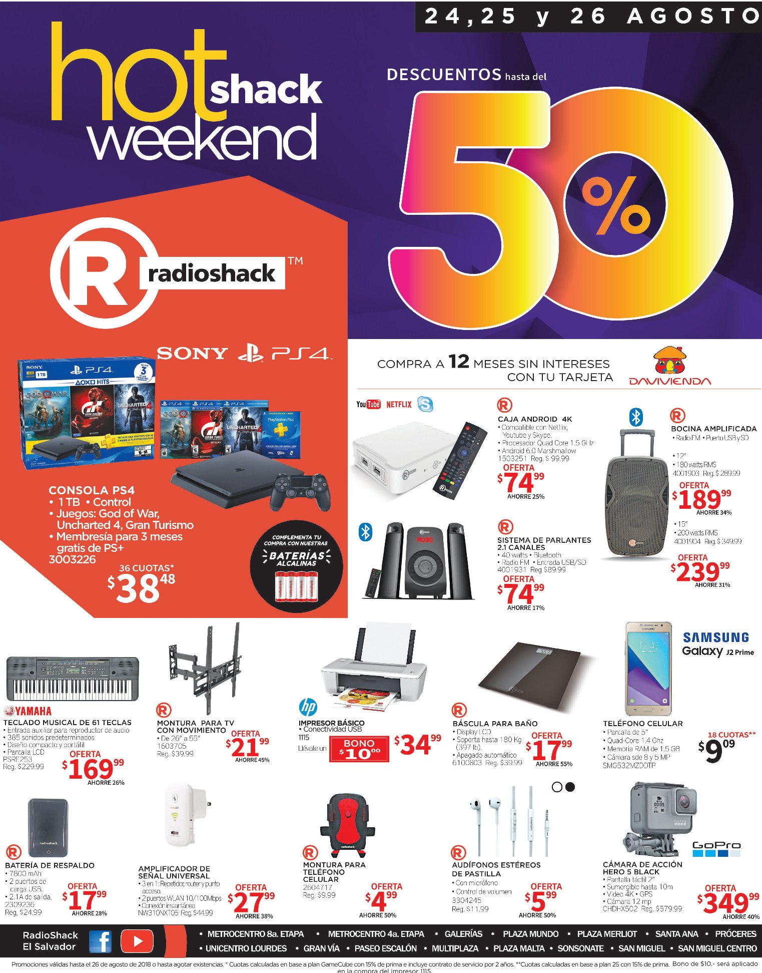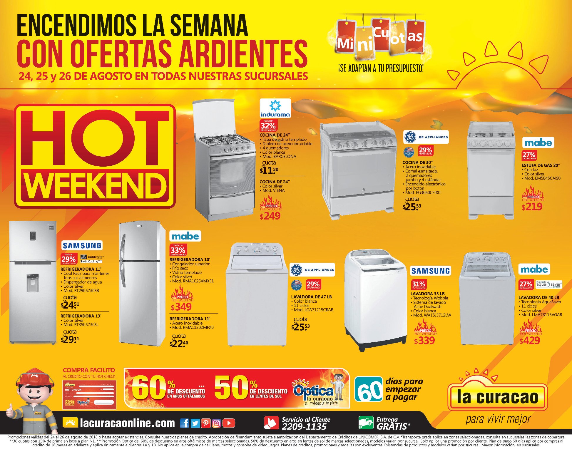 Para finalizar y despedir el ultimo FIN DE SEMANA de Agosto 2018, podes disfrutar de los 3 dias de ofertas, descuentos y promociones HOT WEEKEND de la curacao el salvador. [24,25,26 de Agosto] podes visitar las sucursales de almacenes lacuracao sv.