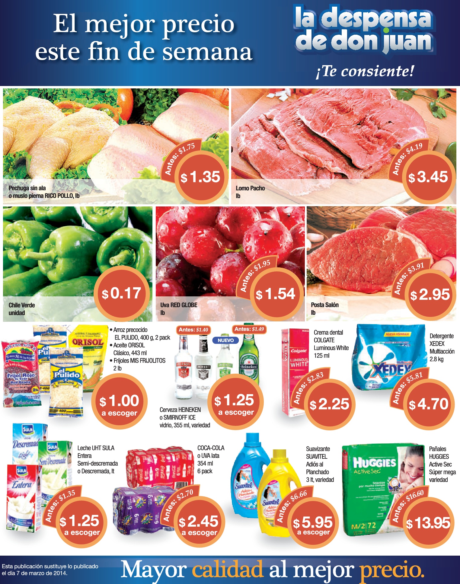 POSTA DE CERDO CARNE MOLIDA SALCHICHA GALLETAS FRIJOLES PAÑALES HUGGIES