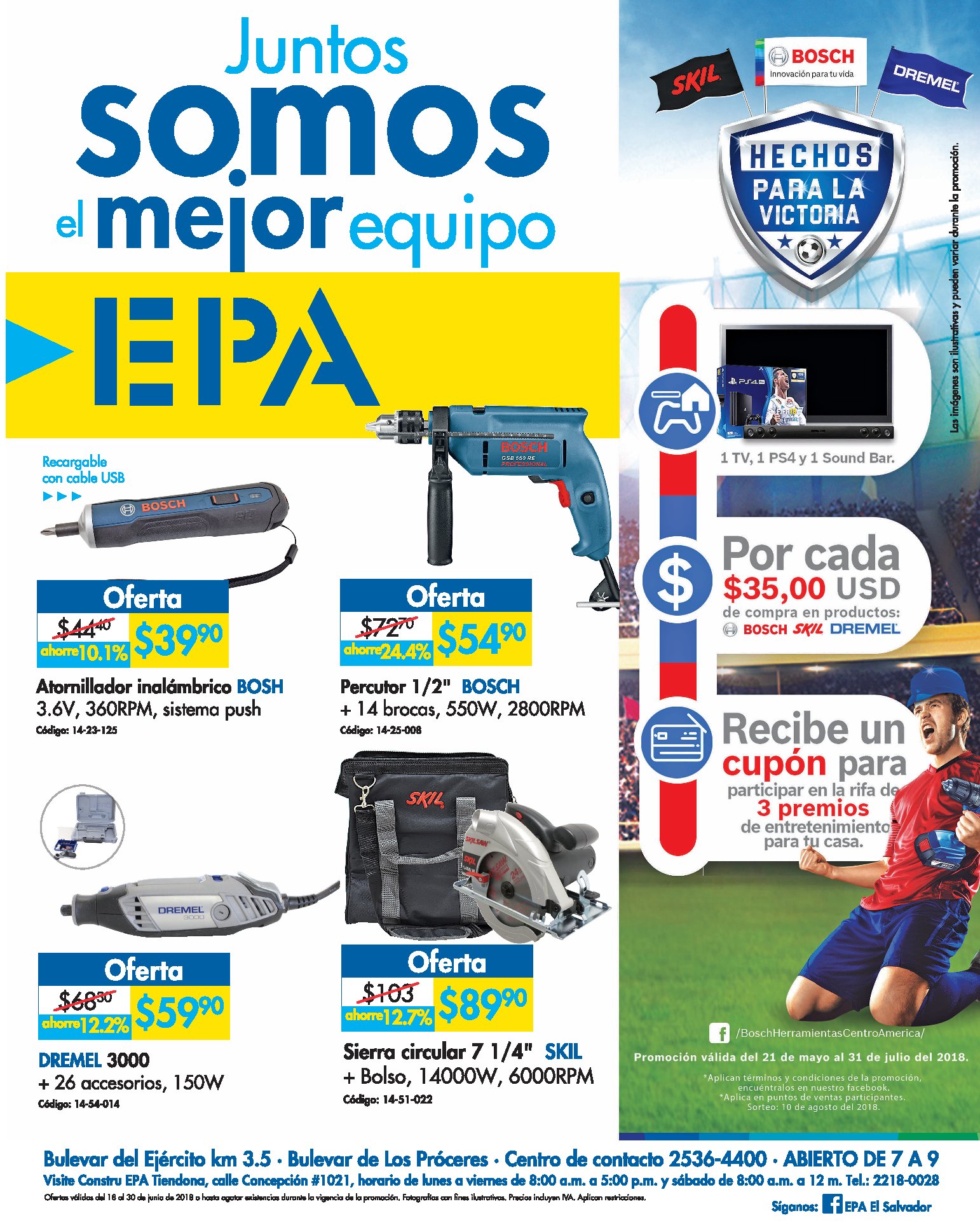 ¡Las ofertas continúan y ahora sus compras le pueden hacer ganar muchos premios! ????Visítenos y disfrute de nuestras #ofertasEPA en herramientas, disponibles hasta el día 30 de junio de 2018.Le esperamos de lunes a domingo en horario de 7:00a.m. a 9:00p.m.