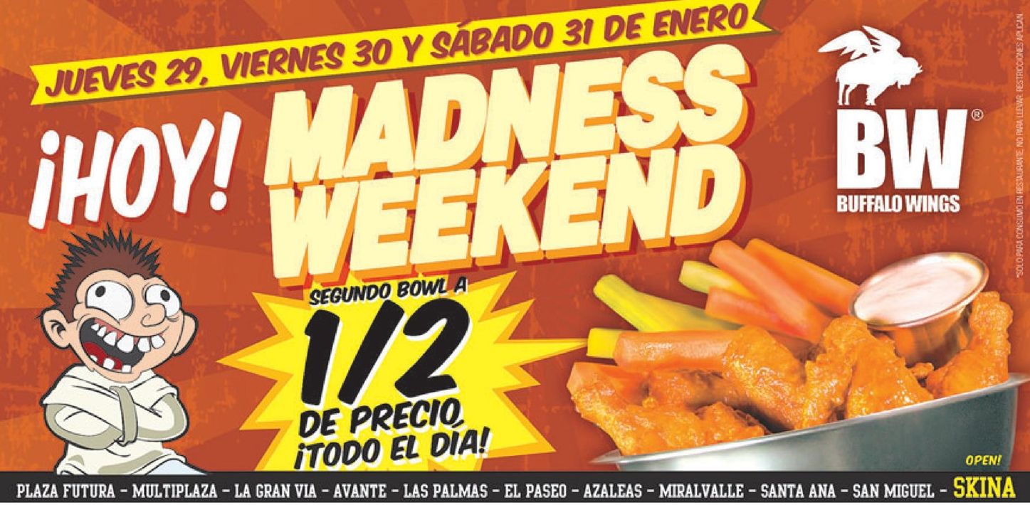 Promocion alitas BUFALO madness weekend