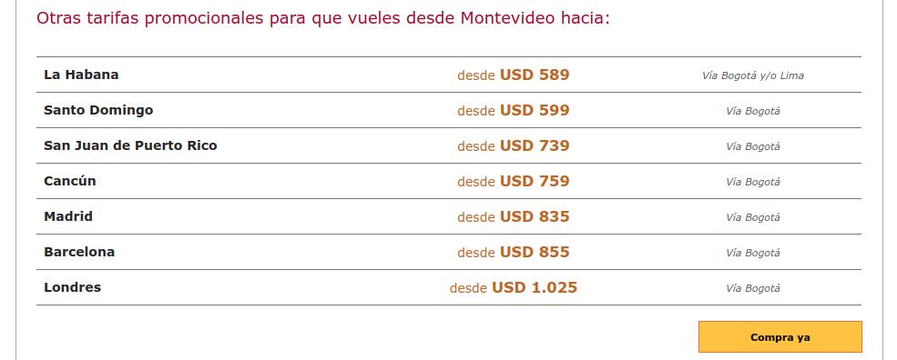 Estas tarifas aplican únicamente para compras en Avianca.com, si realizas tus compras a través de otros canales, las tarifas pueden variar ligeramente.