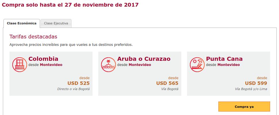 No esperes para volar a los 35 destinos que aerolinea AVIANCA tiene en promoción. hasta el 27 de Noviembre de 2017. Viernes Negro and BlackFriday DEALS savings. ¡Compra ya!