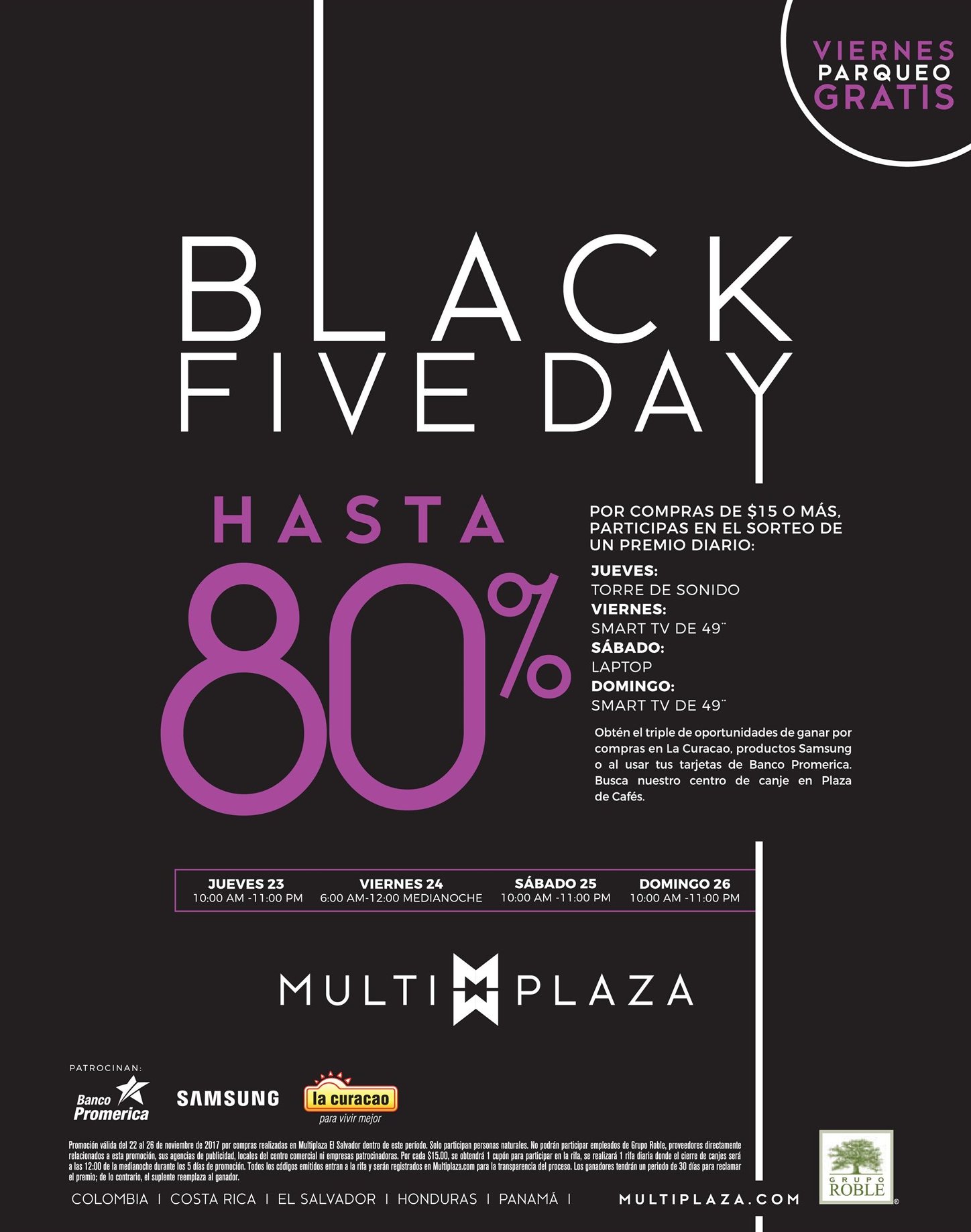 Toda la INFO BlackFriday 2017 la tenemos aqui en nuestra web No busques mas. Black FIVE DAYs hasta 80% OFF en MULTIPLAZA san salvador. Black Friday 2017 discount al pagar con tarjetas banco promerica. Ofertas Black Friday 2017 centro comercial LAS CASCADAS. Ofertas Black Friday 2017 Office Depot el salvador.