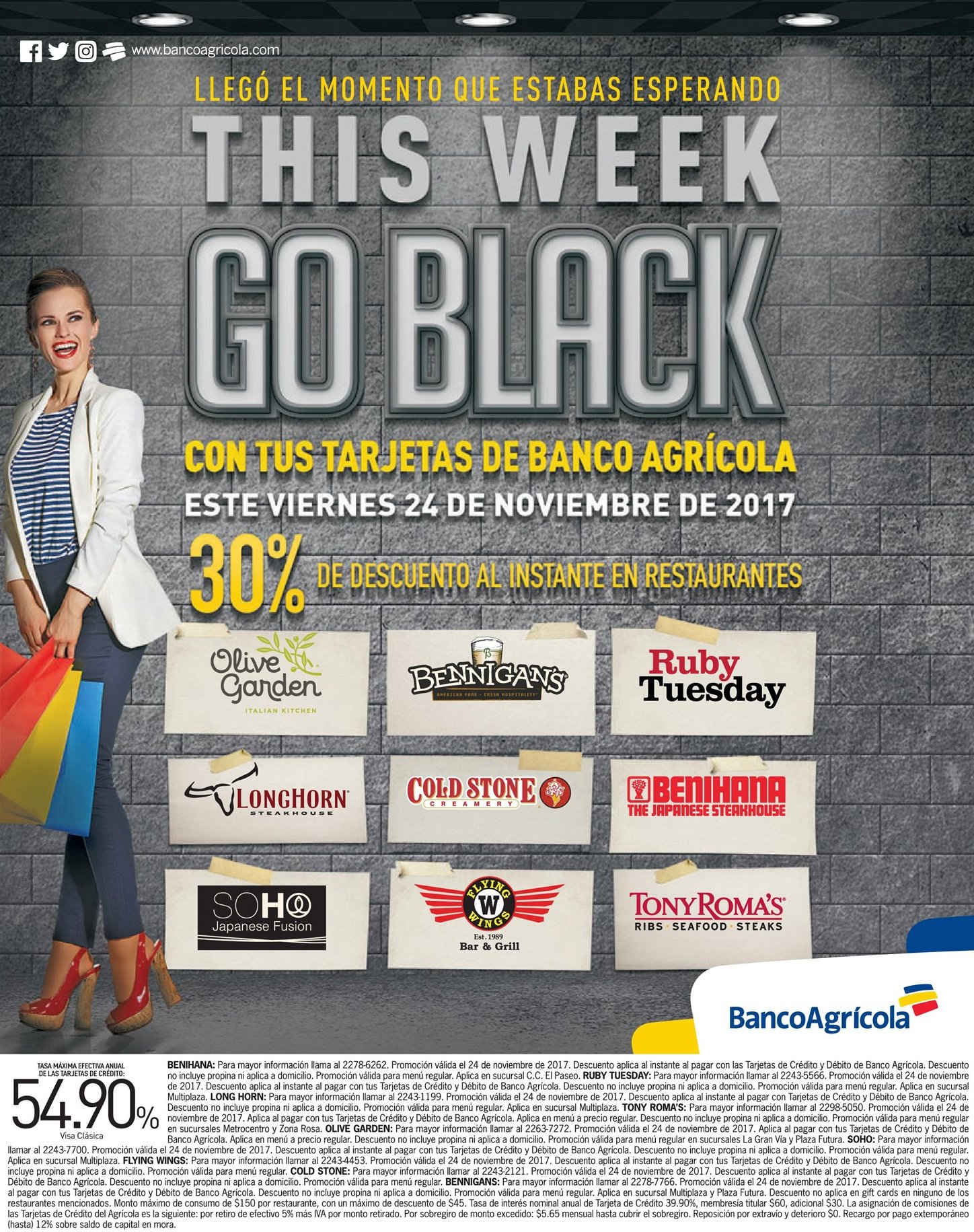 - Descuentos negros en restaurantes al pagar con tarjetas del banco agricola