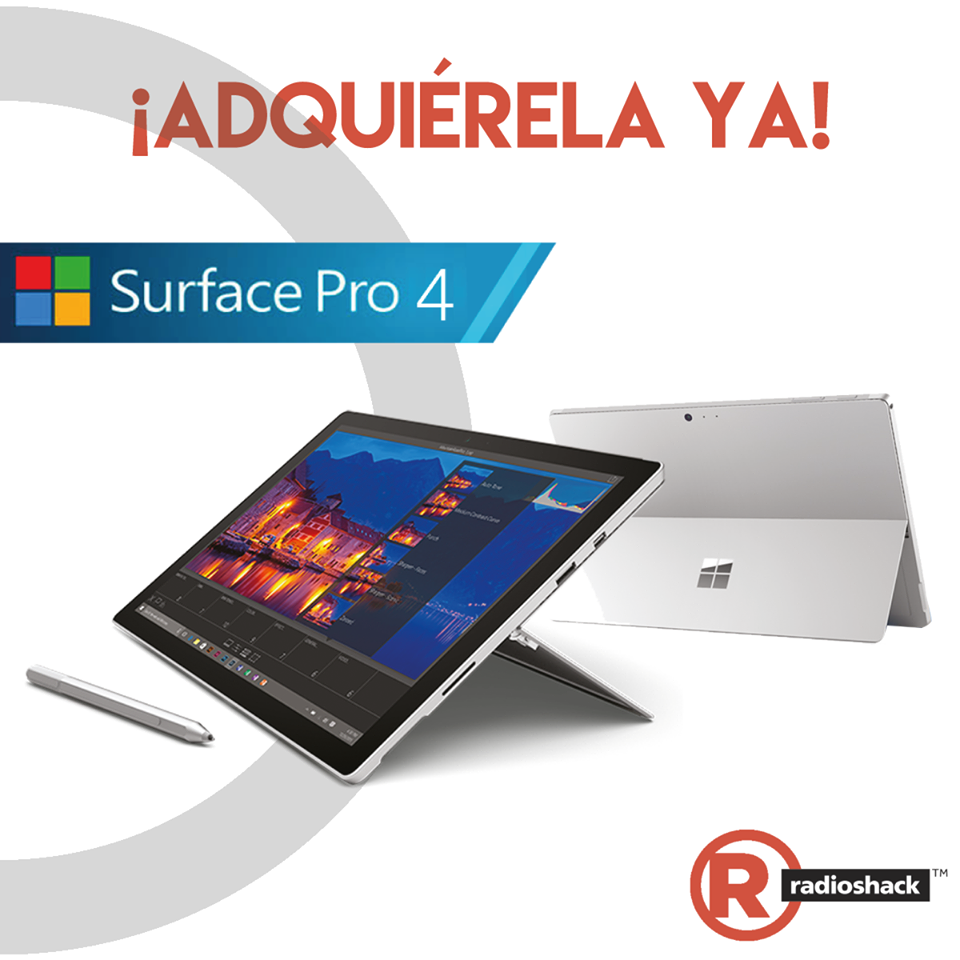 ¡La nueva Microsoft Surface Pro 4 ya está en #RadioShack! ???? Y traemos precios especiales para ti, consulta toda la información acá ???? Comparte los detalles con tus amigos y visita nuestras sucursales Galerías y La Gran Vía para que conozcas todas sus características ???????? ¡Tecnología para todos y al mejor precio! ???? Aprovecha los precios especiales que tenemos para ti en nuestro #MillenialFest ???? Visita nuestras sucursales hasta el 31 de julio y llévate todo lo que siempre has soñado con tu #CrediShack ????