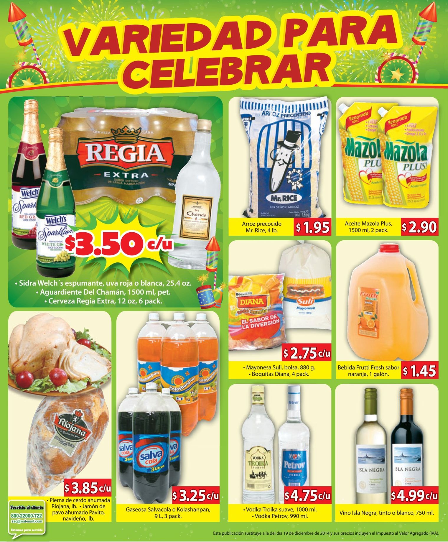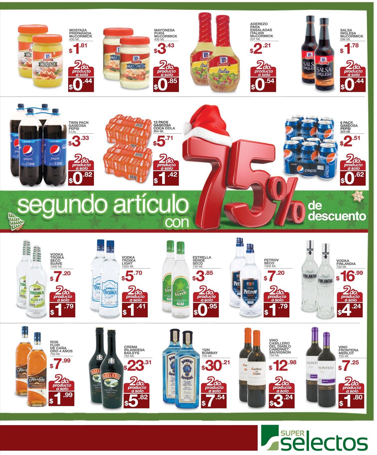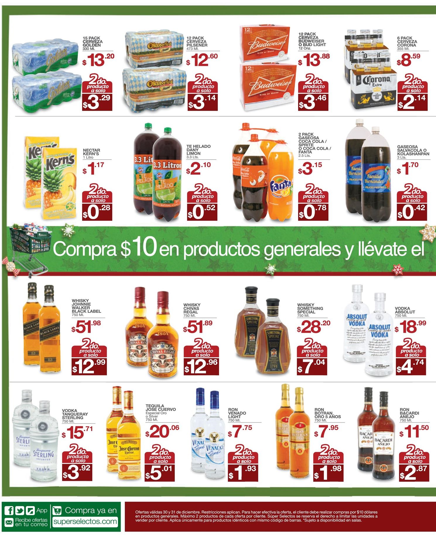 WALMART, VIDRI, FREUND, SUPER SELECTOS, MAXI DESPENSA, SEARS, CALZADO, CENAS, GOURMET, JAMONES, PAVOS, LA CURACAO, PRADO, BEBIDAS, RON, TEQUILA. WHISKY, TRAJES