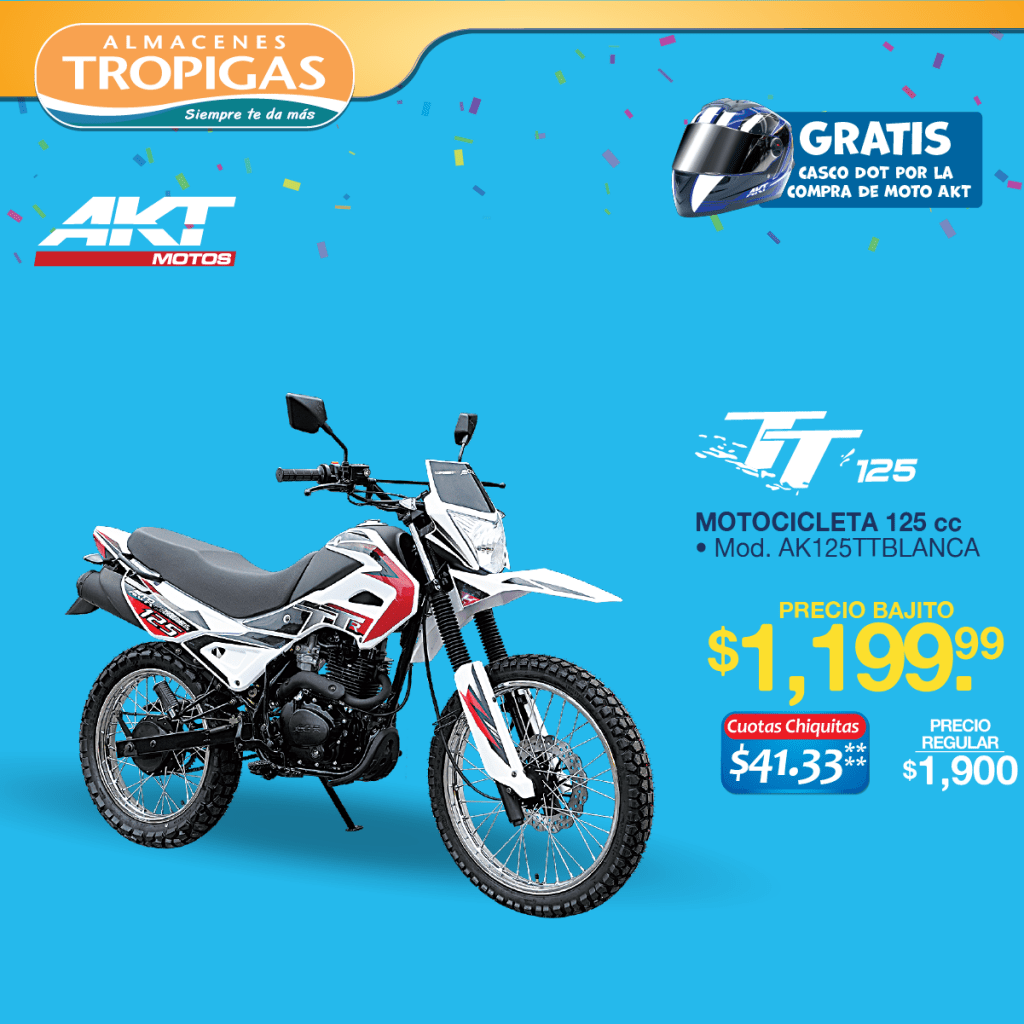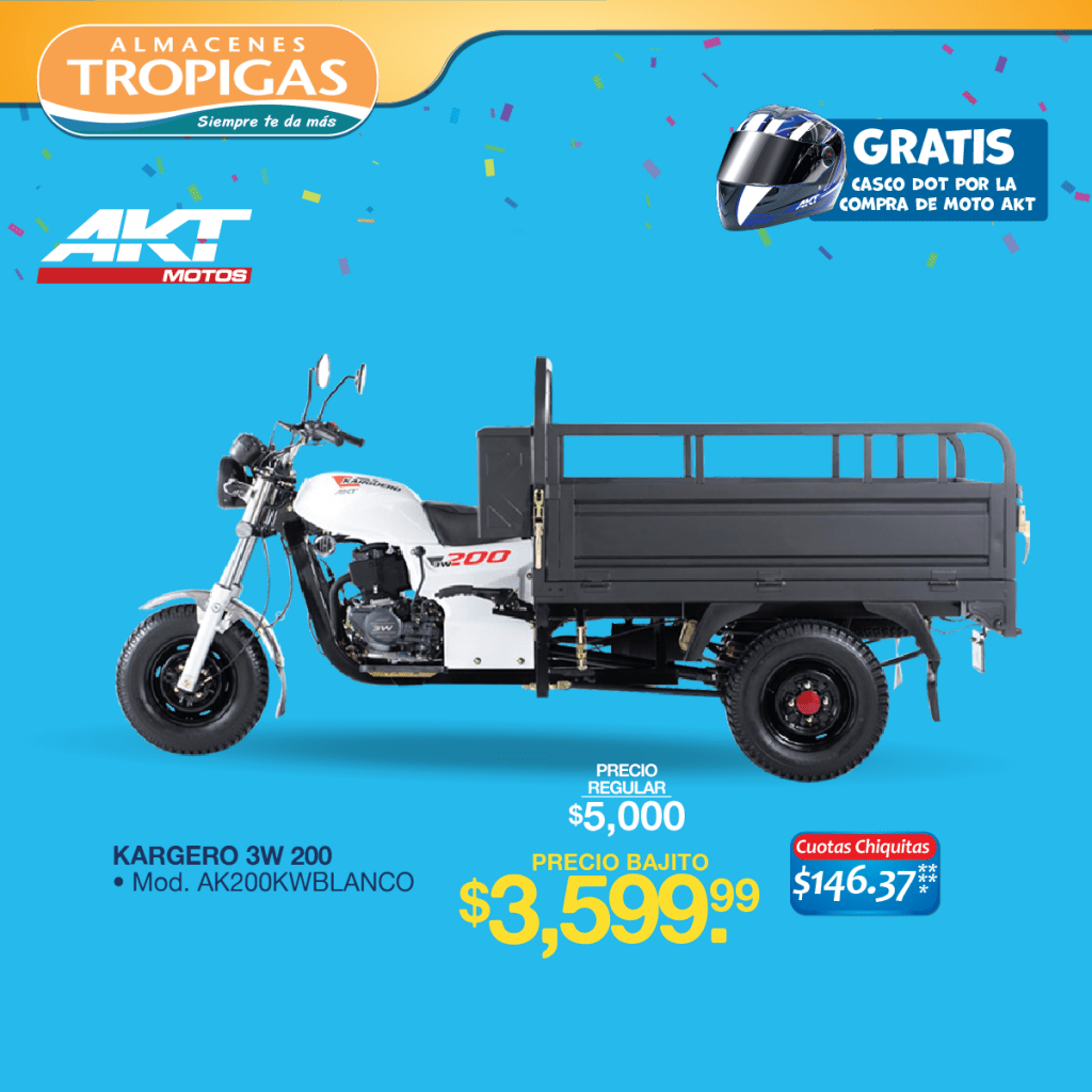 «Precio de moto TT 125 almacenes tropigas el salvador 2021» «Precio de moto Carguero 3W 200 – Tres llantas AKT Motos para trabajo pesado 2021» «Precio de moto EVO R4S 200 AKT almacenes tropigas el salvador 2021» «Precio de moto GT150 almacenes tropigas el salvador 2021» «Precio de moto SPORT 200CC AKT almacenes tropigas el salvador 2021»