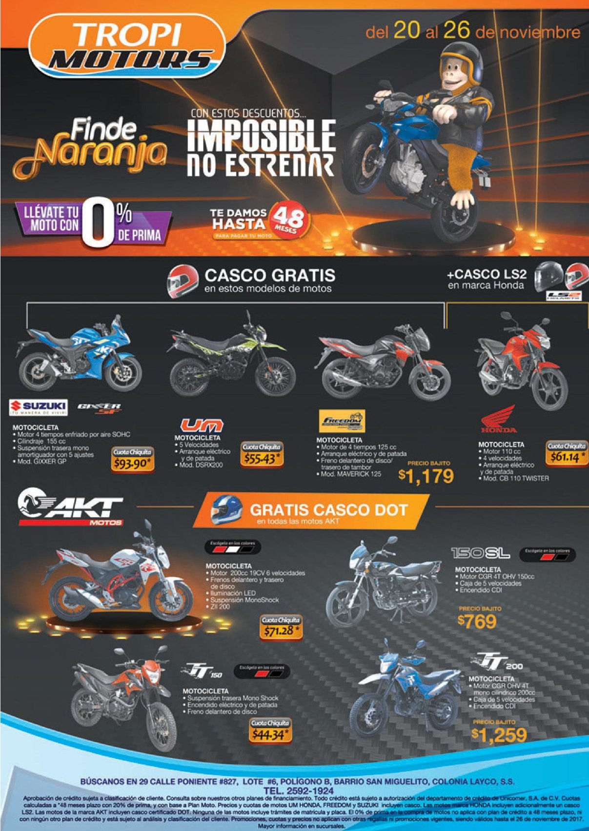 ¡Los precios del #FindeNaranja siguen en TODAS nuestras tiendas de Almacenes Tropigas! ???????? Tenemos súper precios en motos y hasta 48 meses plazo para que no tengas ninguna excusa ???? Aprovecha nuestras promociones hasta el 26 de noviembre ????