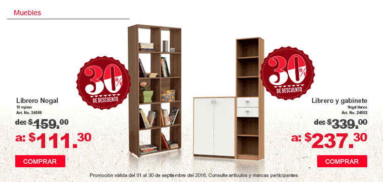 descuento en libreras en madera nogal.