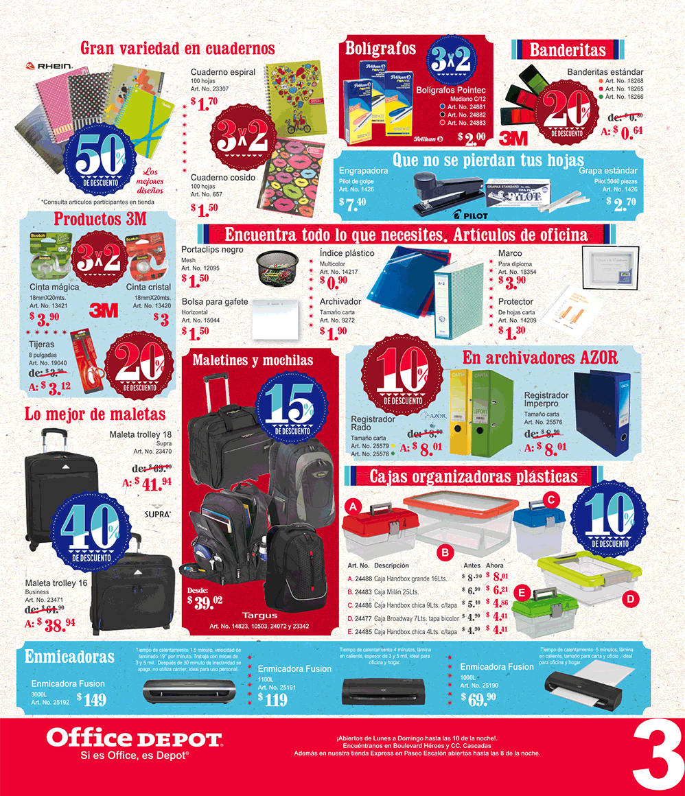 Promociones en cuadernos y lapiceros office depot el salvador.