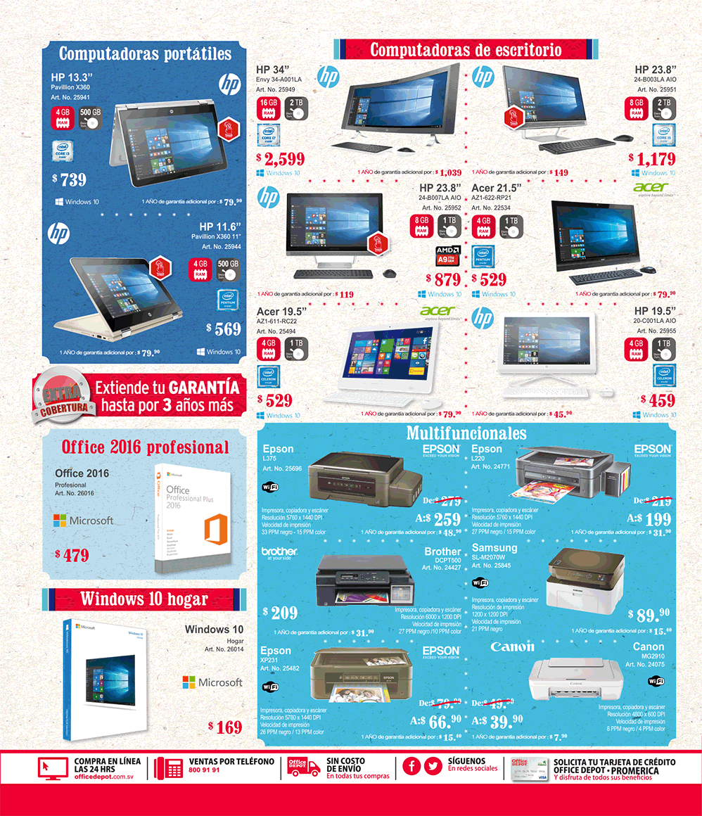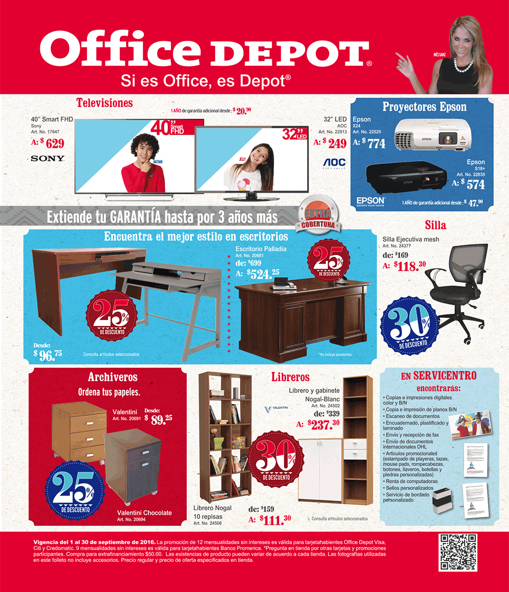 Catalogo Office Depot ofertas en el mes de la independencia (Sep 16), nuevas promociones con cuotas mensuales sin intereses, mas regalos por tus compras en todo las tiendas OfficeDEPOT el salvador. descuento en libreras en madera nogal. Descuetos en mochilas maletas cuadernos papeleria y mas. Enmicadora Fusion lamina tus documentos importantes. GRATIS bocina inalambrica marca KLIP por tus compras office depot. Impresores CANON en promocion office depot.GIF
