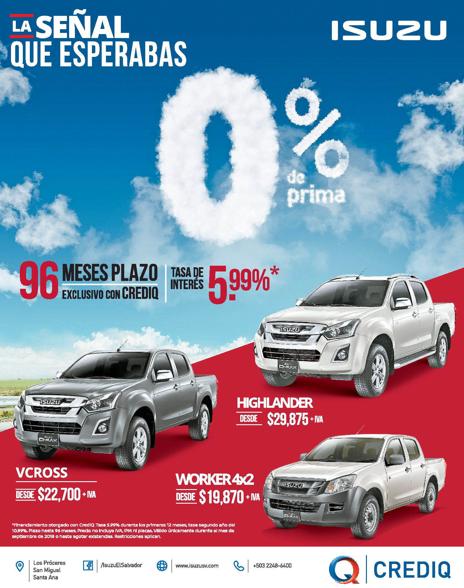 CREDIQ el slavador y Excel automotriz te invitan en septiembre 2018 a dar el primer paso con para comprar auto nuevo. Descubre todos los detalles de nuestros financiamientos para asalariados, taxistas, jubilados y comerciantes. Recuerda que contamos con 0% prima.