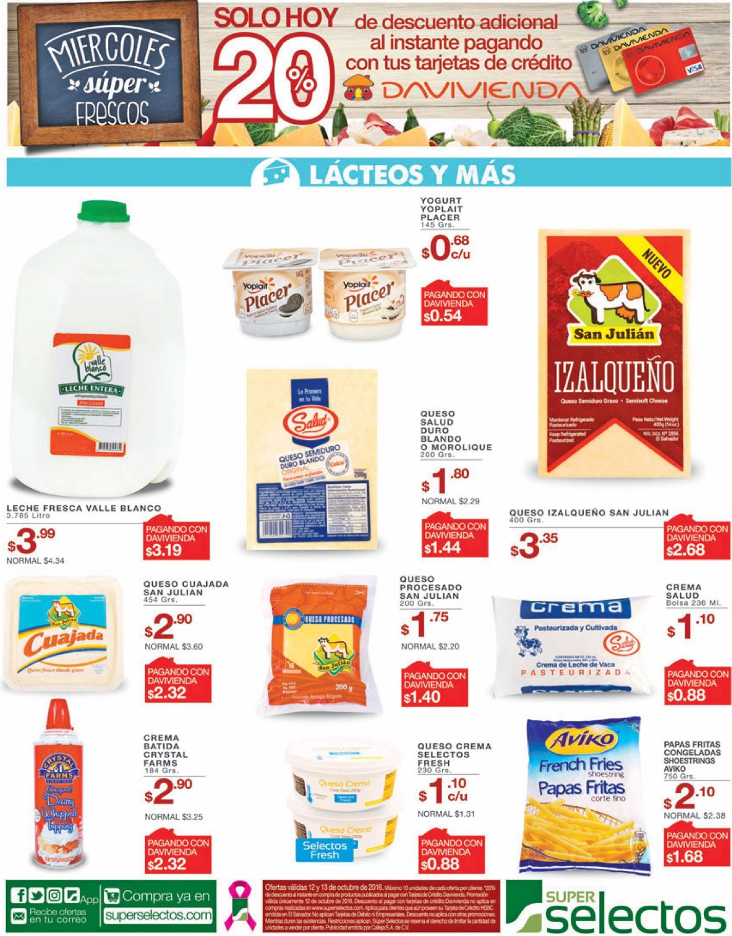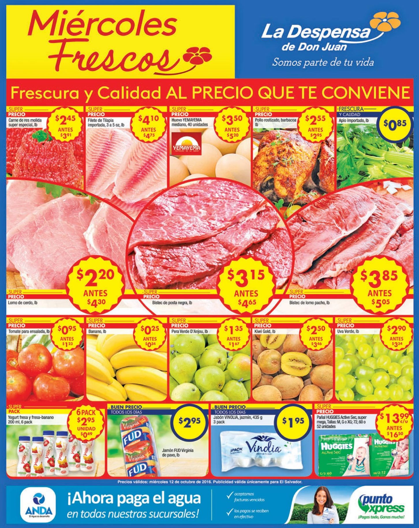 Bienvenido a la mitad de semana con descuentos coloridos y sabores nutridos para todos. Ademas haz tus aprovisionamiento de carnes. Ahora 30 OFF al comprar en la tienda virtual de SIMAN y pgar con Banco Cuscatlan. AHORA en mas facil pagar la factura de ANDA en la despensa. Ahora es buen dia para comprar LACTEOS en super selectos. Al arte de preparar una taza de cafe NESCAFE dolcegusto.