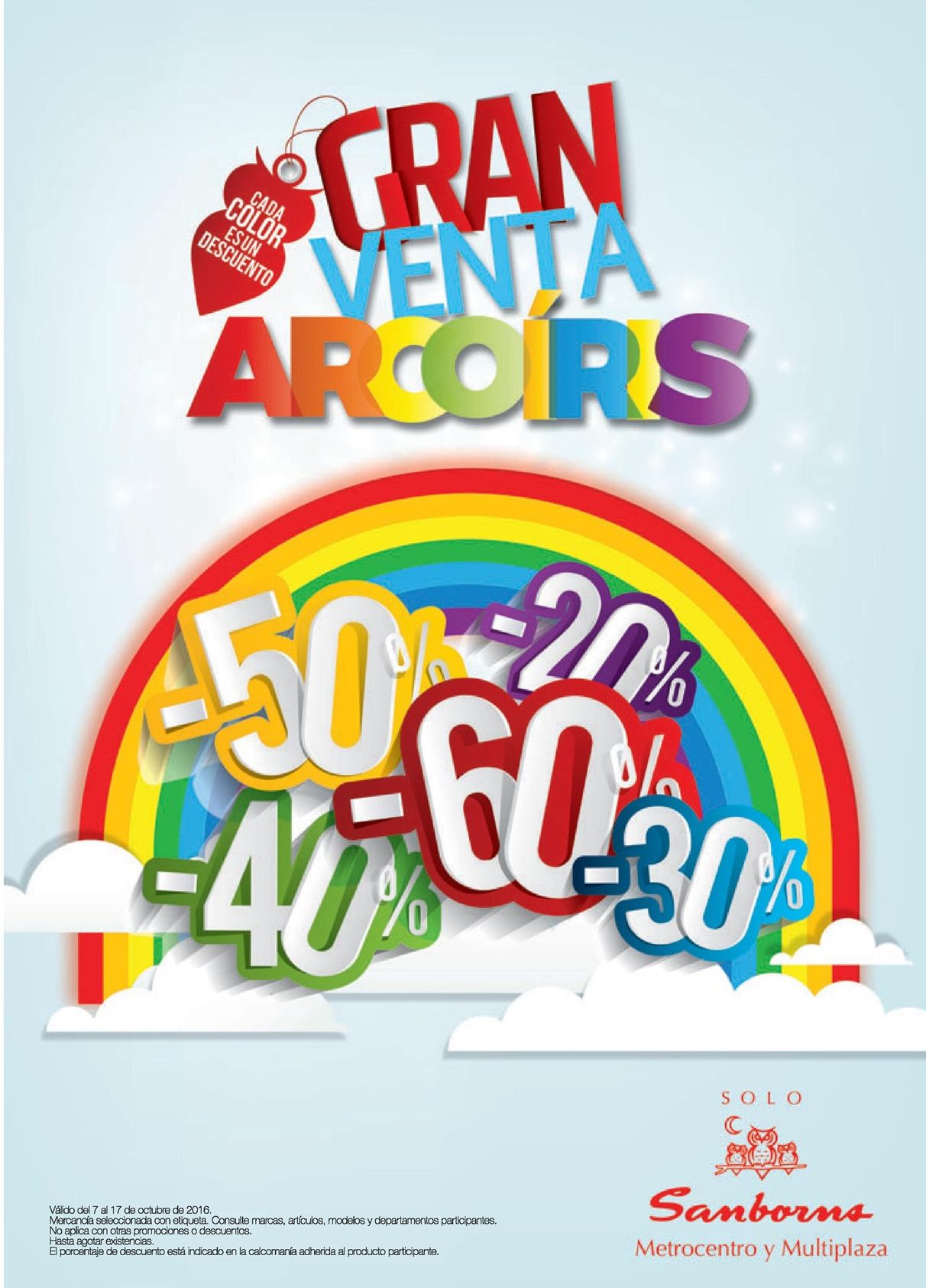 OJO conoce los descuentos de la gran venta ARCOIRIS de almacen SAMBORNS.