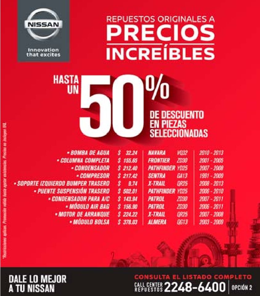 Repuestos originales NISSAN precios especiales.