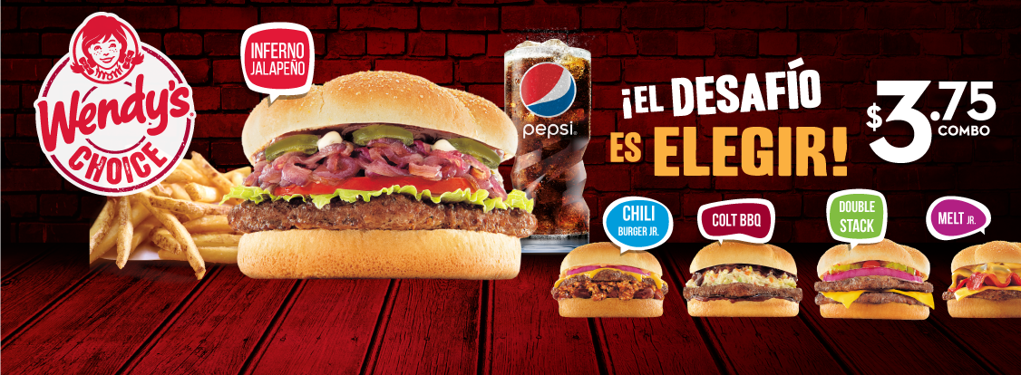 elegi tu combos favorito en WENDYS BURGER por solo 3 75 de dolar