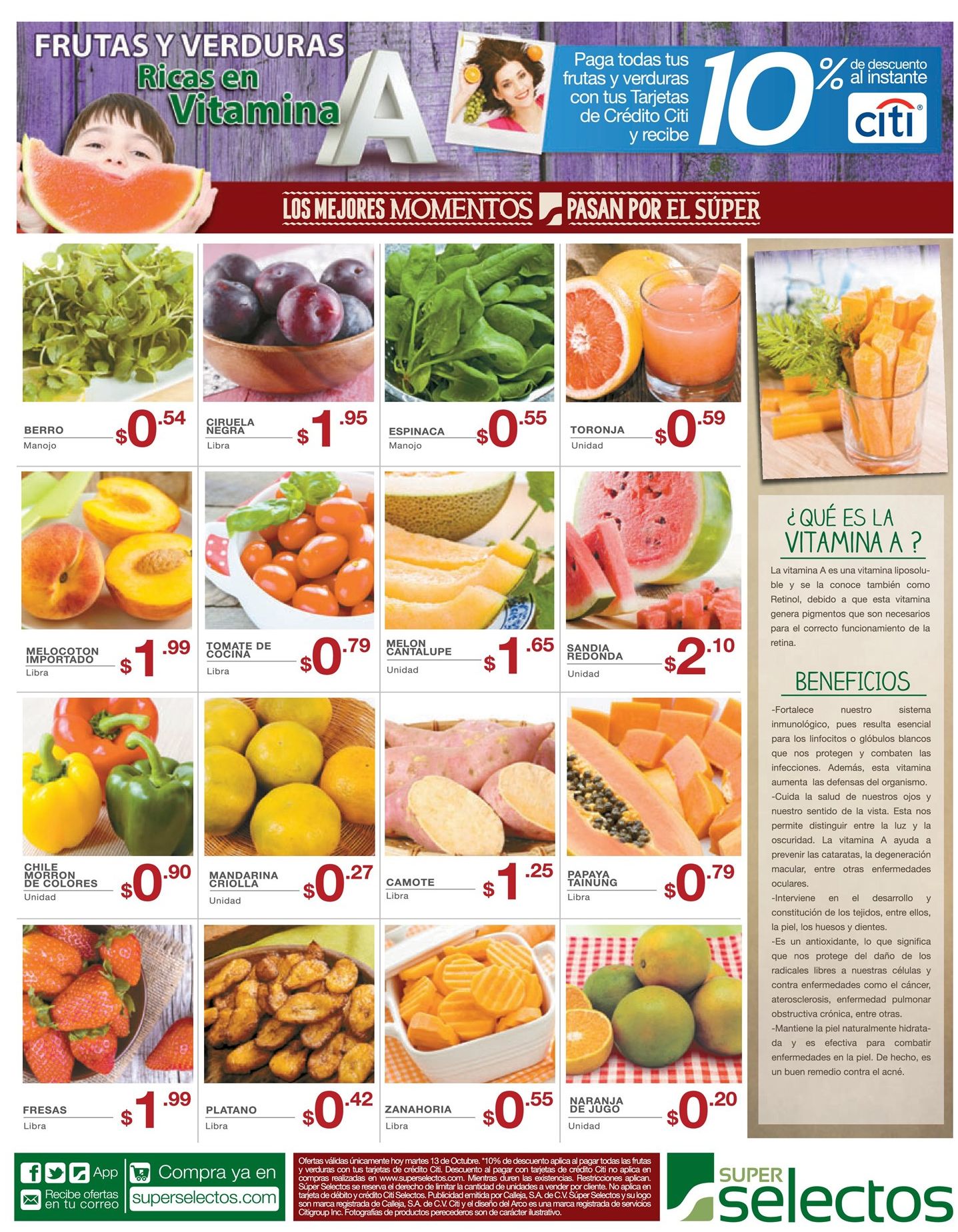 Beneficios de las frutas y verduras con VITAMINA A. Cursos de verano para aprender un nuevo idioma. Disfruta de los beneficios del aceite de canola de super selectos. Las amas de casas conocen los mejores prodcutos de lavado via WALMART. las voces finalista del NUMERO uno temporada 3. Los mejores snacks y boquitas para celebra via la despensa. San Jose costa rica y GUATEMALA por solo 229 doalres via AVIANCA. TEXACO con 15 off gracias a DAVIVIENDA. Vamos a tu restaurante favorito 30 OFF con scotibank.