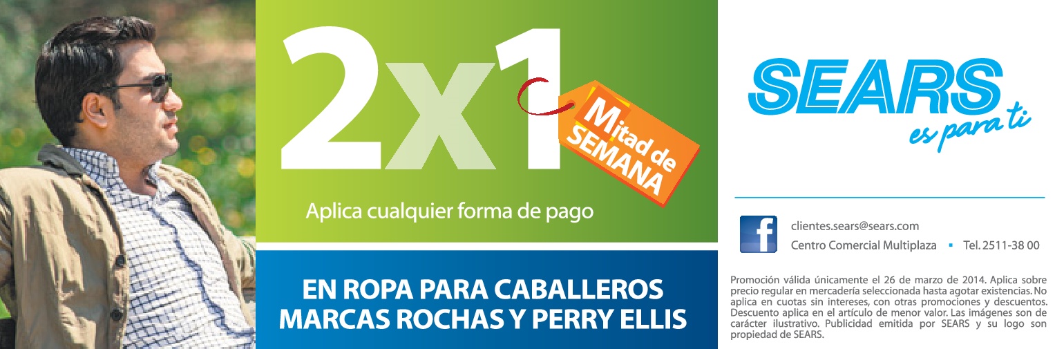Promociones 2×1 en ropa para caballeros SEARS sv 26mar14