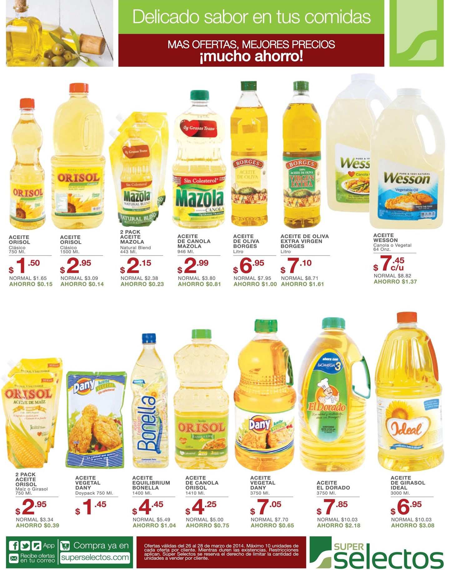 Variedad en ACEITES de cocina AHORRO super selectos sv 26mar14