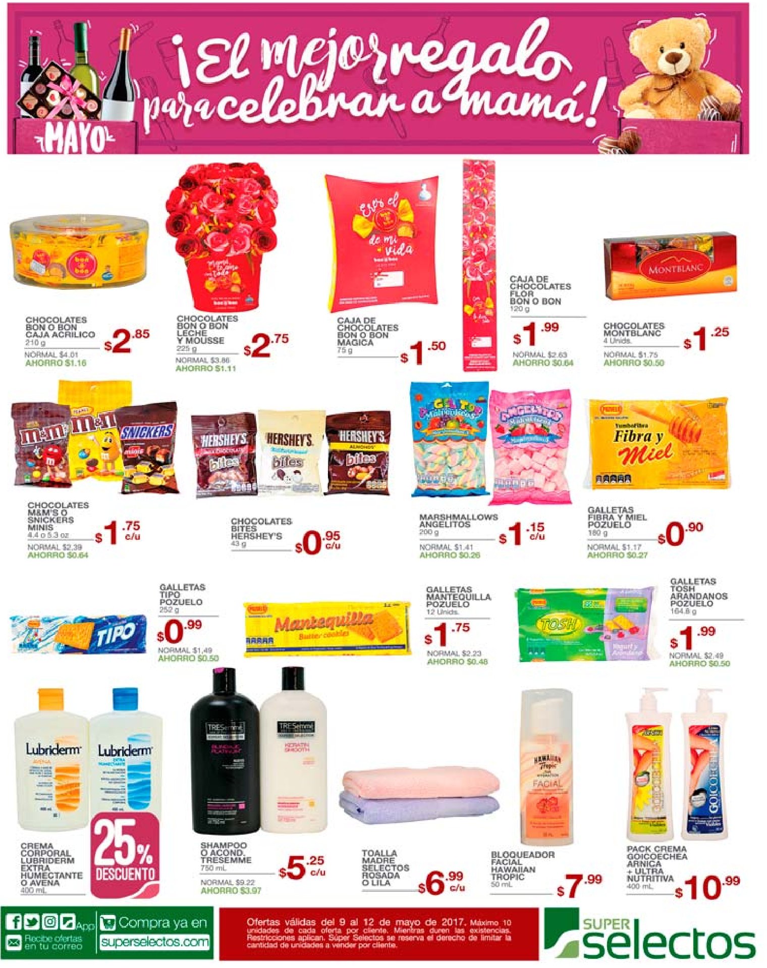 CHOCOLATES listos para comprar y regalar a mama. Cosmeticos y perfumes de siman sv para las mamas. La CURACAO 25 off en mueble sy linea blanca MOTHER DAY. LA PACHANGA y FIESTAs co ofertas en jugos gaseosas y boquitas. Las ofertas del supermevcado en el dia de las madres 201. OFERTAS Dulces Chocolates y Golosinas for MOM day.