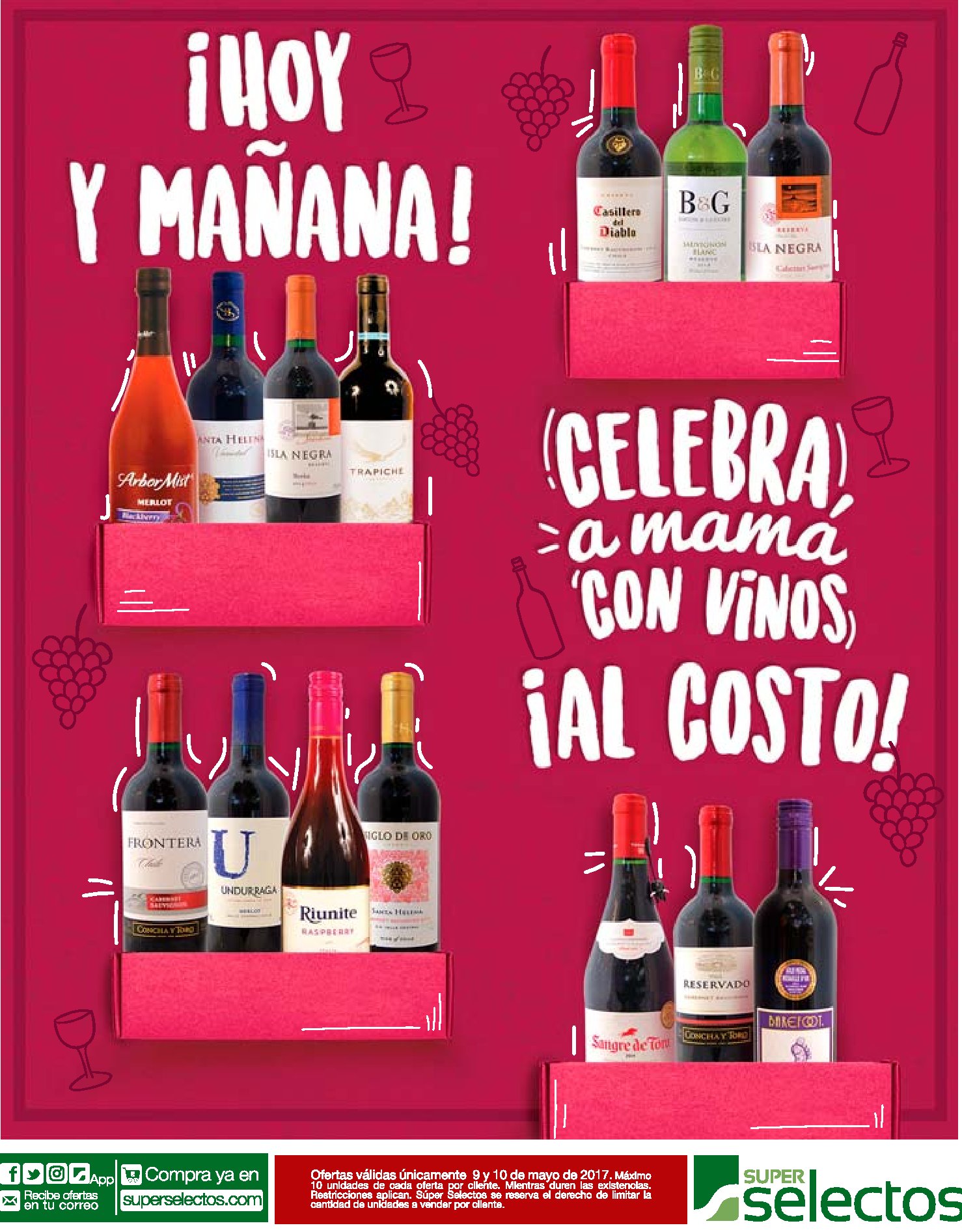 PARA cambiarle el celular a mama con selectos movil. para mamas COSMETICOS Y TINES al costo hoy y mañana – PREMIOS para ma en tus compras pricesmart sv mothers day super selectos VINOS para brindar por la vida de mama al costo. TODOS los prodcutos NIVEA super selectos con 25 off – 09may17.