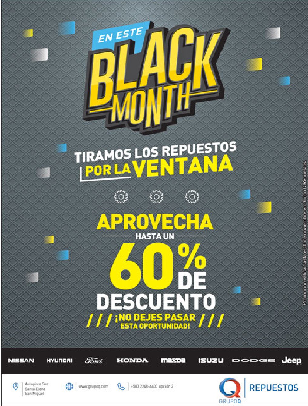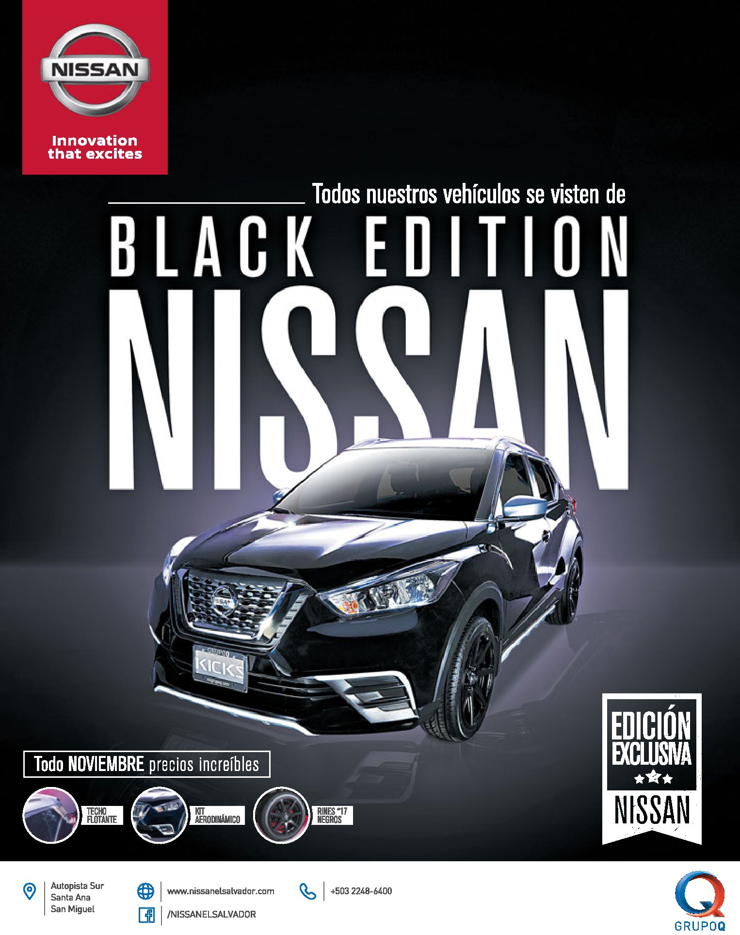 Buenos precios en todas las medidas de llantas. Impresa Repuestos BLACK friday sale en aditivos y lubricantes. MITSUBISHI Black Friday sale 2017 modelos ASX 4×2 y Montero Sport. NISSAN Black friday edition 2017 modelo exclusivo KICKS. Promocion BLACK FRIDAY KIA autos modelo picanto LX y RIO EX. Respuestos GRUPO Q black friday MONTH 2017. Disfruta la intensidad del NP300 Frontier Black Edition, con accesorios como halógenos, snorkel y más.