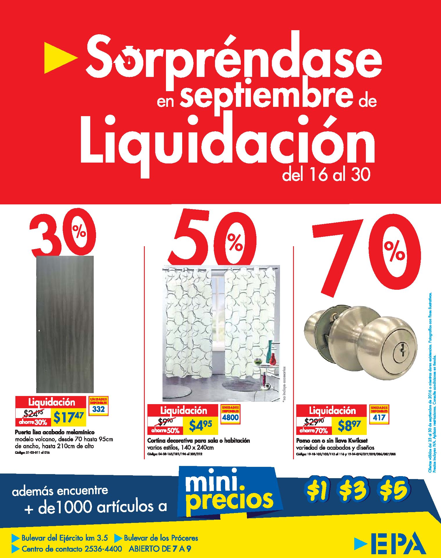 FINALIZA el mes de septiembre 2016 con precios en liquidacion.