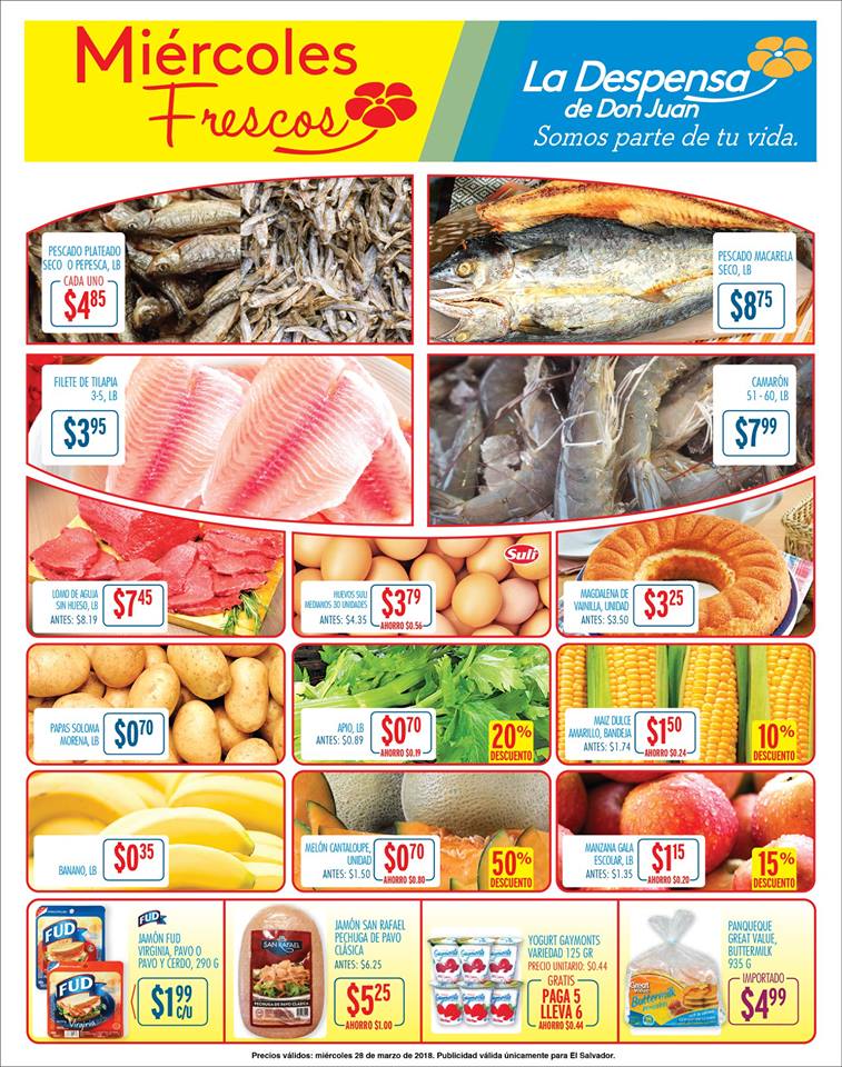 Supermercado La Despensa de Don Juan el salvador sabe que deseas disfrutar de las delicias del mar como los ceviches de camarón o mixto para dar el toque para hacerlo perfecto a tus gustitos de semana santa con tus productos de #MiércolesFrescos ???????? *Vigencia únicamente 28 de marzo del 2018.