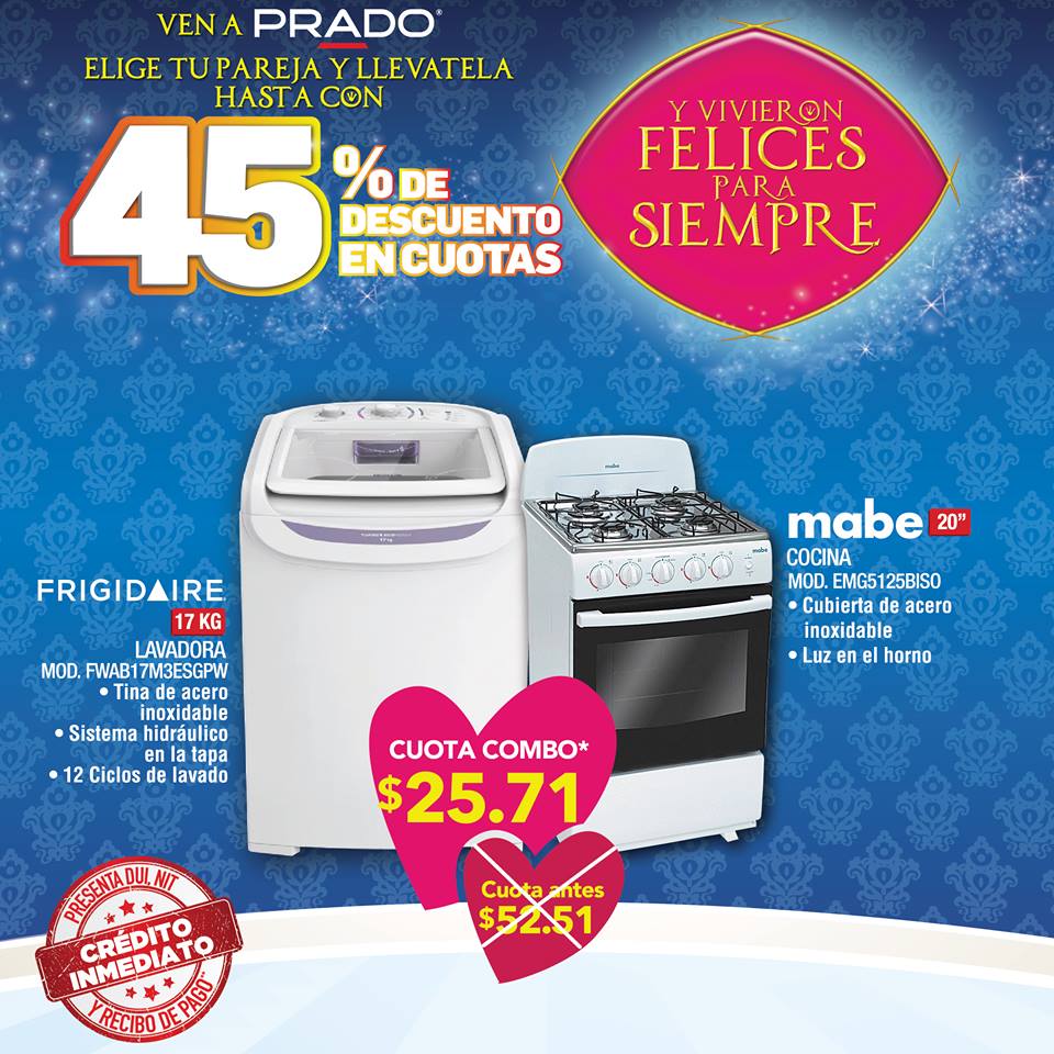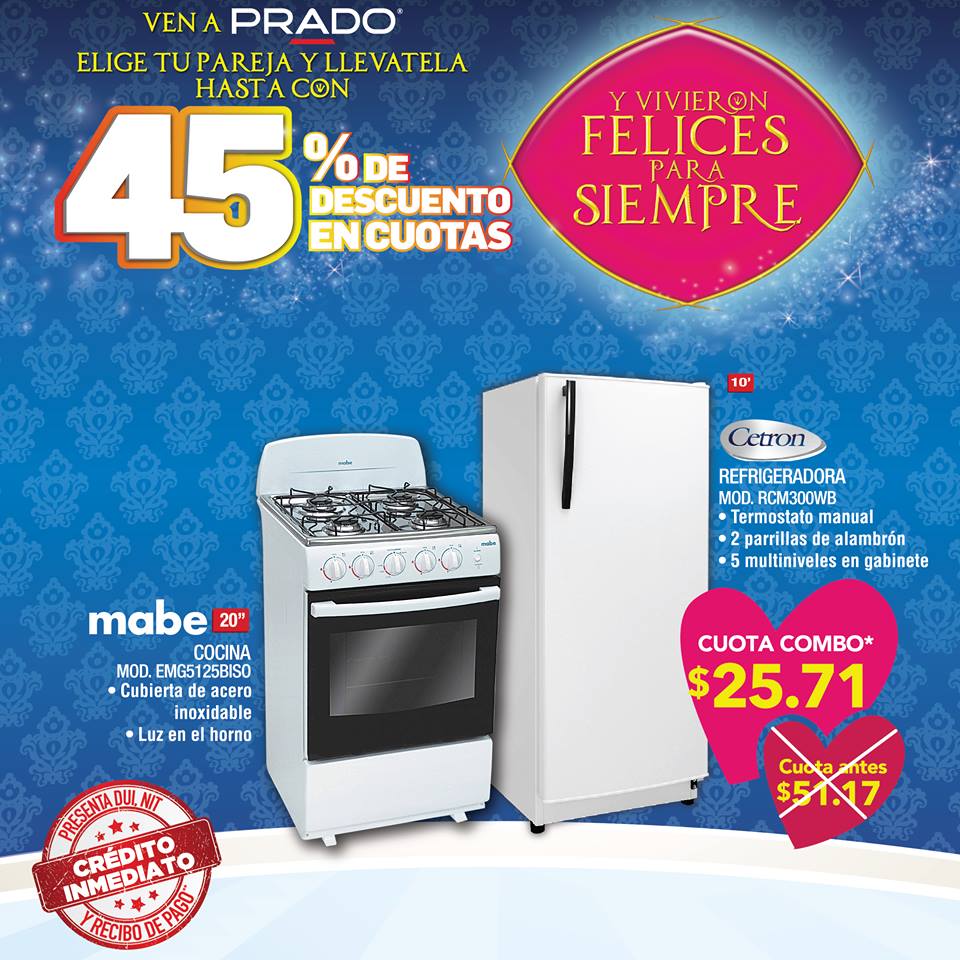 ¡¡Y vivieron felices para siempre!!! Conoce a tu pareja ideal con PRADO SV. Por ejemplo refrigeradora mas cocina, porque en #PRADO encuentras la pareja soñada para preparar tus cenas familiares Visitanos y conoce a esta y todas las demás parejas que te esperan este mes en tu sucursal preferida, y si lo prefieres llámanos al 2251-8080 para comprar desde la comodidad de tu hogar Hay una invitación para ti!???? ¡Participa compartiendo nuestra página, diviértete y gana! Cuéntanos tu historia de amor de la forma más creativa incluyendo a #PRADO en ella y gánate una cena romántica para ti y tu pareja este 14 de Febrero???????????? el ganador y el lugar de la cita romántica el 10 de Febrero #SanValentín