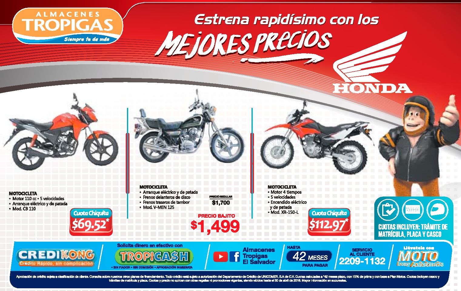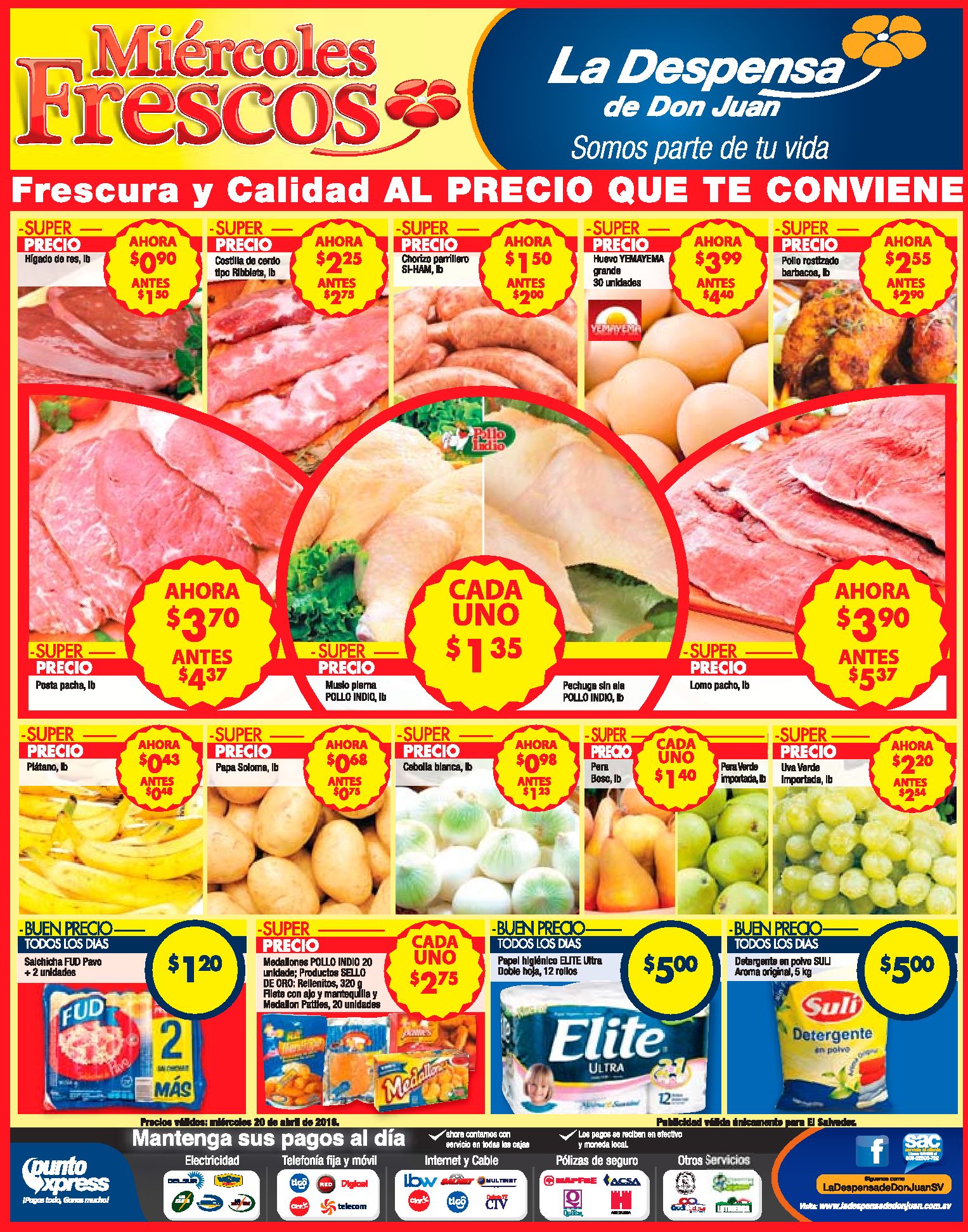 Ahora es MIERCOLES mitad de la semana con super frescas promociones en los supermercados, pero ademas Nos encontramos con estas ofertas del dia (20-abr-16). Ahora es dia de cambiar las TOALLAS 50 OFF descuento Deposito de telas. Almacenes Tropigas Estrena tu moto HONDA con los precios. CALLE 7 reality show – toda la informacion videos y noticias. CONFORT para mam sandalias con estampado tigriado. CREDISIMAN le regala a MAMA una camioneta del año HYUNDAI santa fe. Desayuno con sandwich QUIZNOS desde 1_25 de dolar.