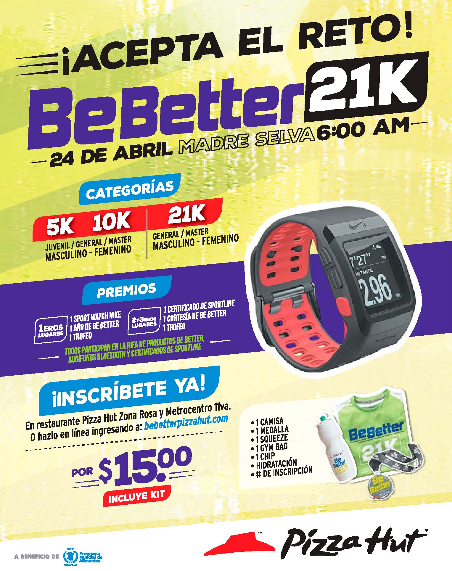 Premios de carrera BEBETTER de pizza hut.
