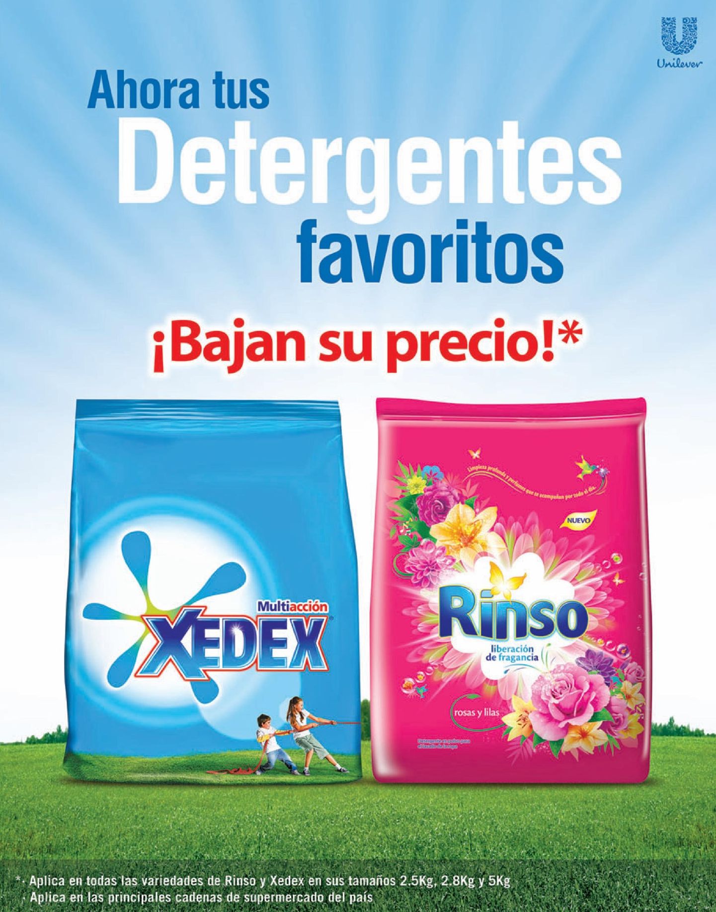UNILEVER anuncia precio bajo en detergentes XEDEX y RINSO.