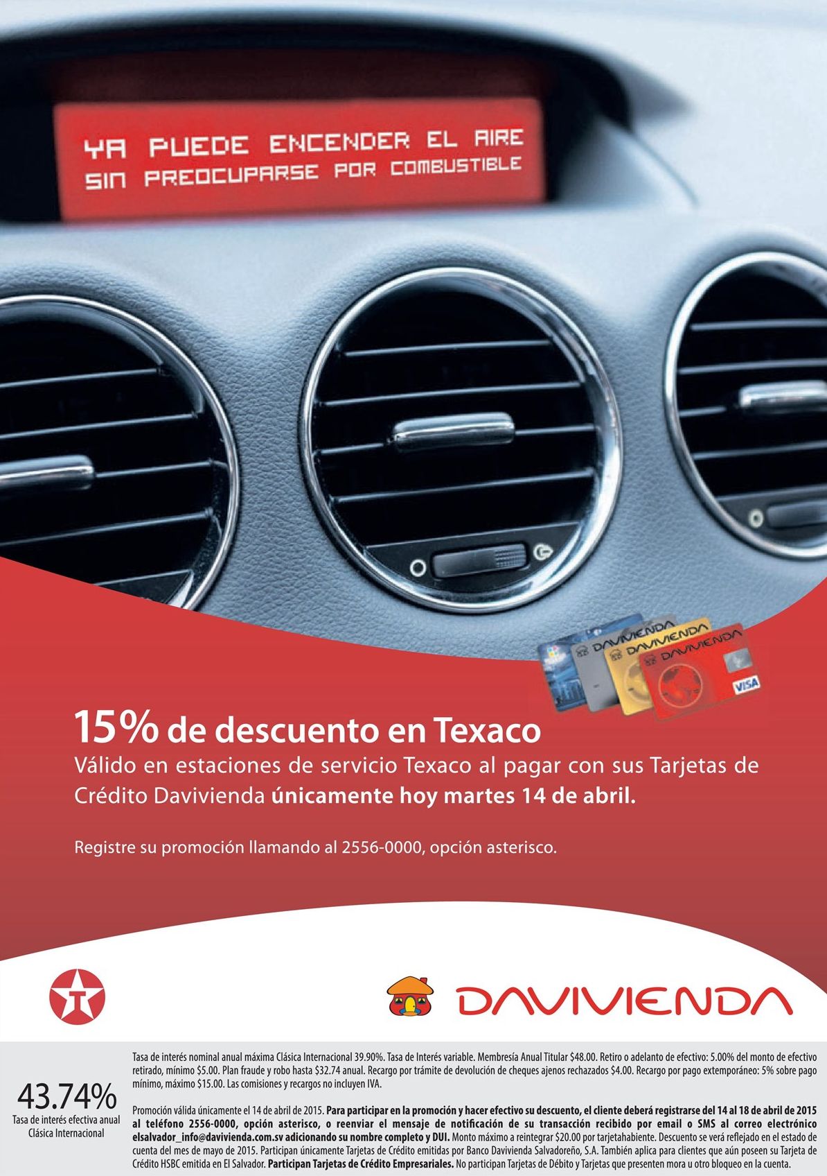HOY davivienda con 15 OFF en gasolineras TEXACO – 14abr15