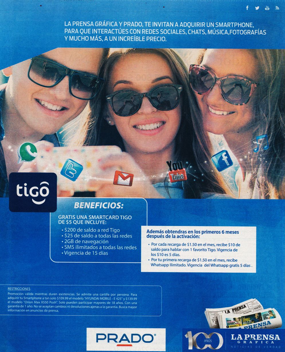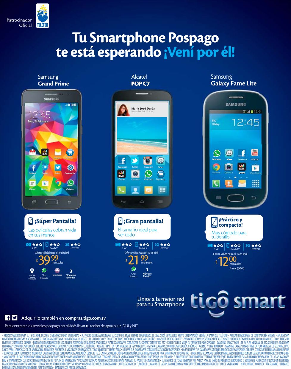 Solo TIGO te ofrece plan smartphones desde 12 dolares