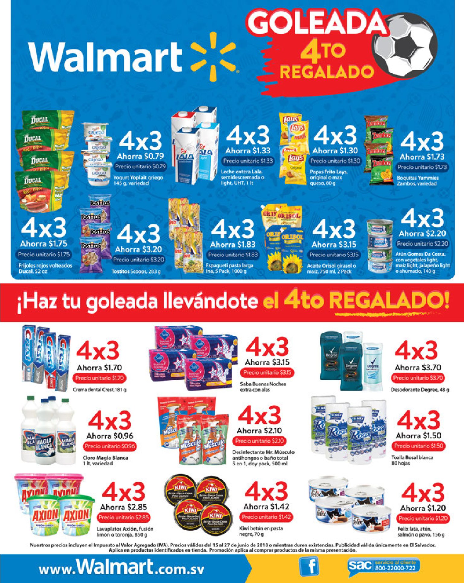 - GOLEADA promocion de productos 4×3 walmart sv junio 2018