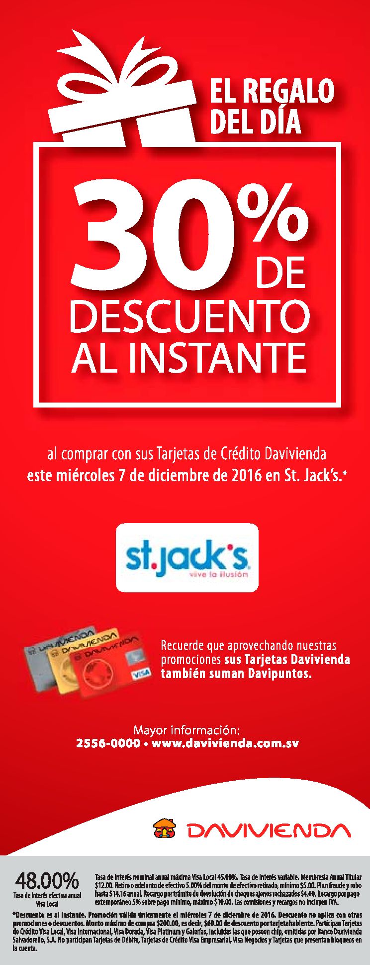 REGALO del dia 30 off en tiendas st jacks gracias DAVIVIENDSA.