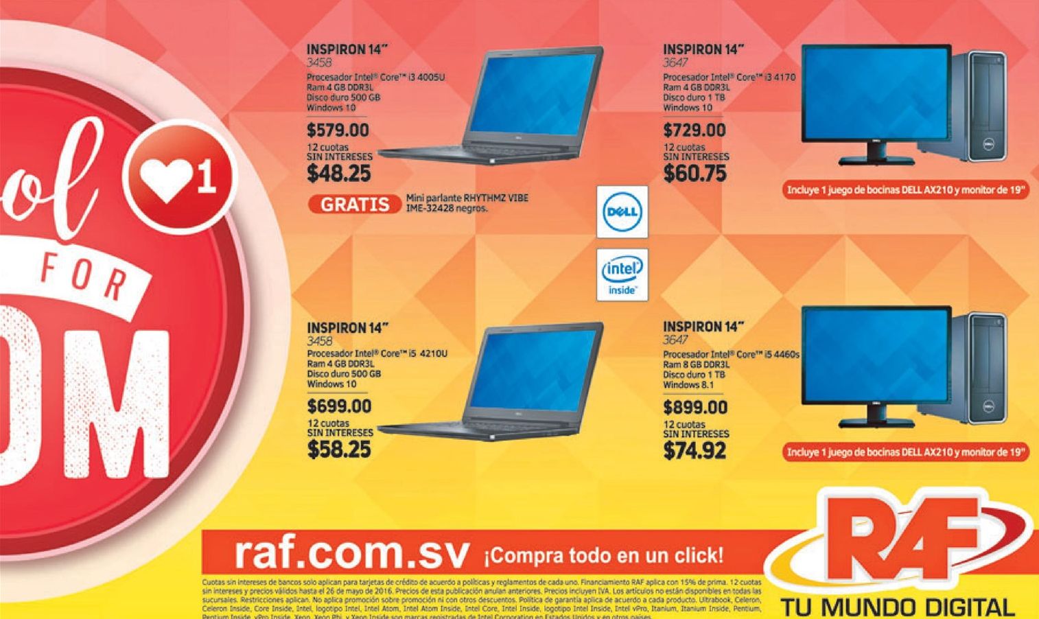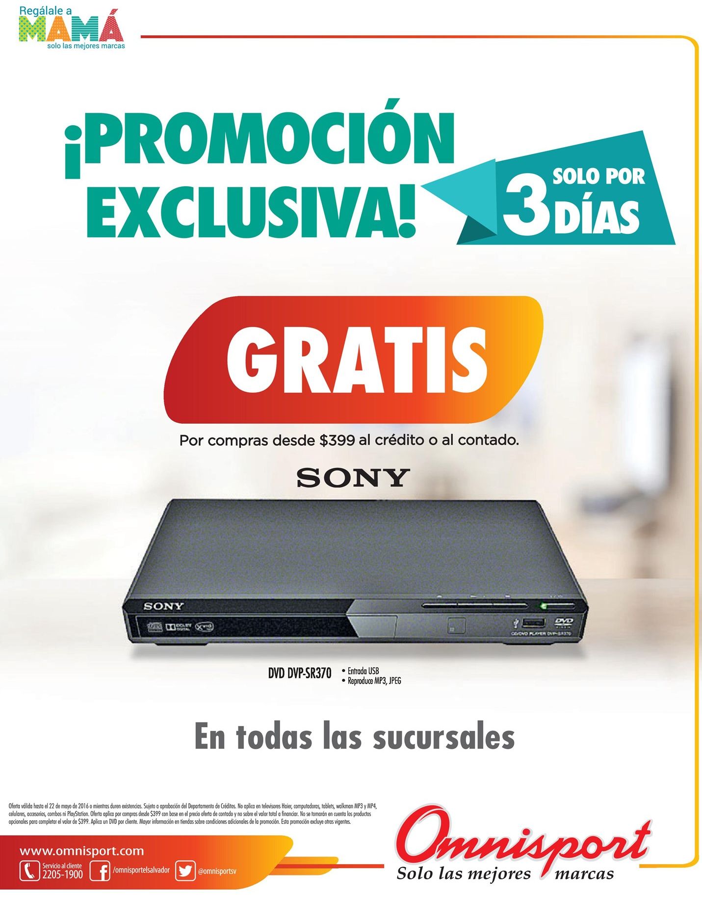 NO mezcles tus ideas, mejor ponelas claras con nuestro catalogo diario de promociones este viernes tiene, te va sonar feliz cuando veas esto (20-may-16). 3 dias exclusive promotion DVD player SONY free. Aceites y Salsitas de cocina en oferta Despensa Familiar. APERTURA de la nuevas tiendas WASHINGTON store productos americanos. Aqui estan las ofertas de fin de semana Super Selectos. Calidad de sonido para tus videos y canciones. CARDEDEU eventos y convenciones EXPO BODA 2016 lago de coatepeque. COMBO especial pollo campero dia de las madres.