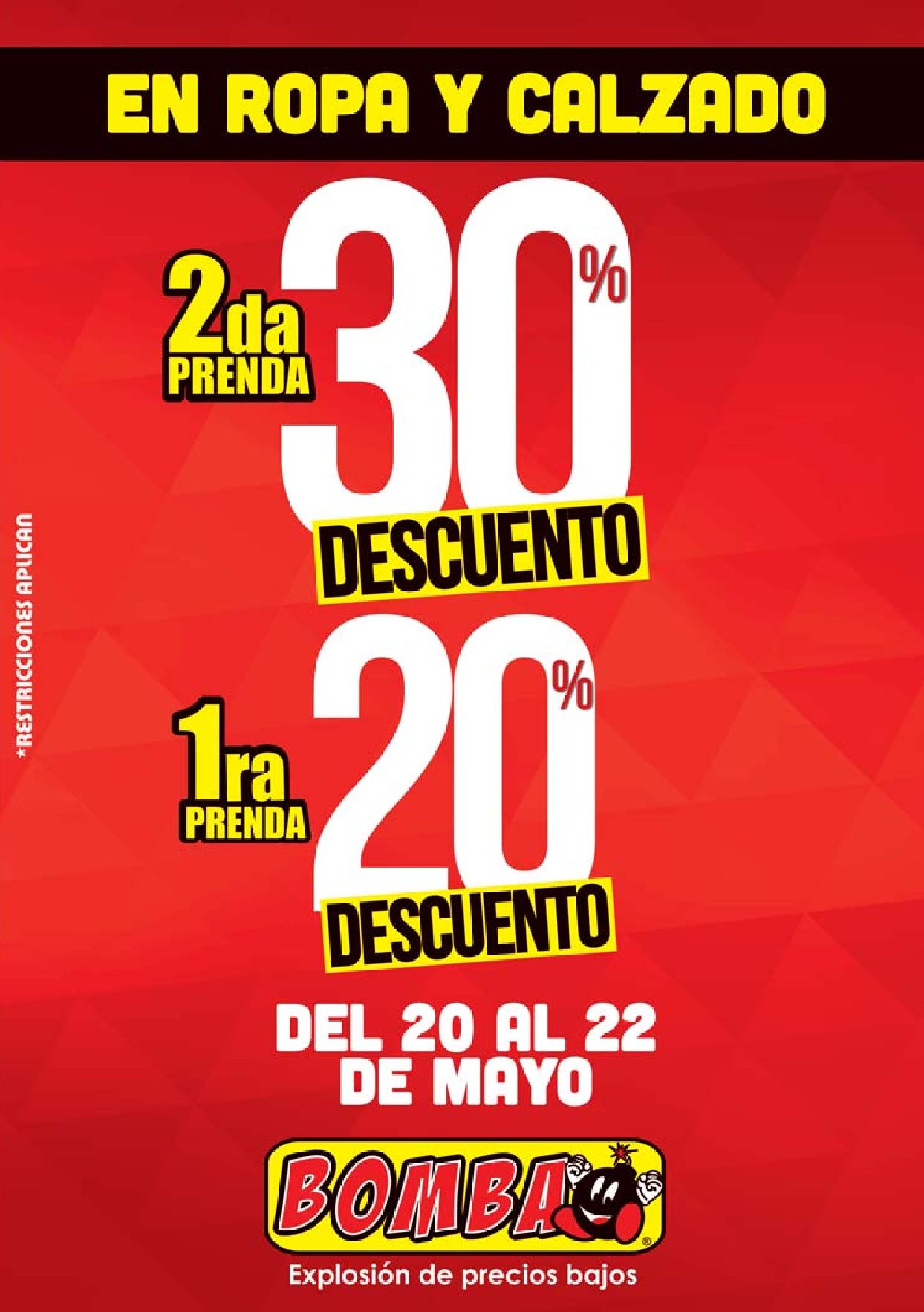 FIN DE SEMANA descuentones en ropa y calzado BOMBA.