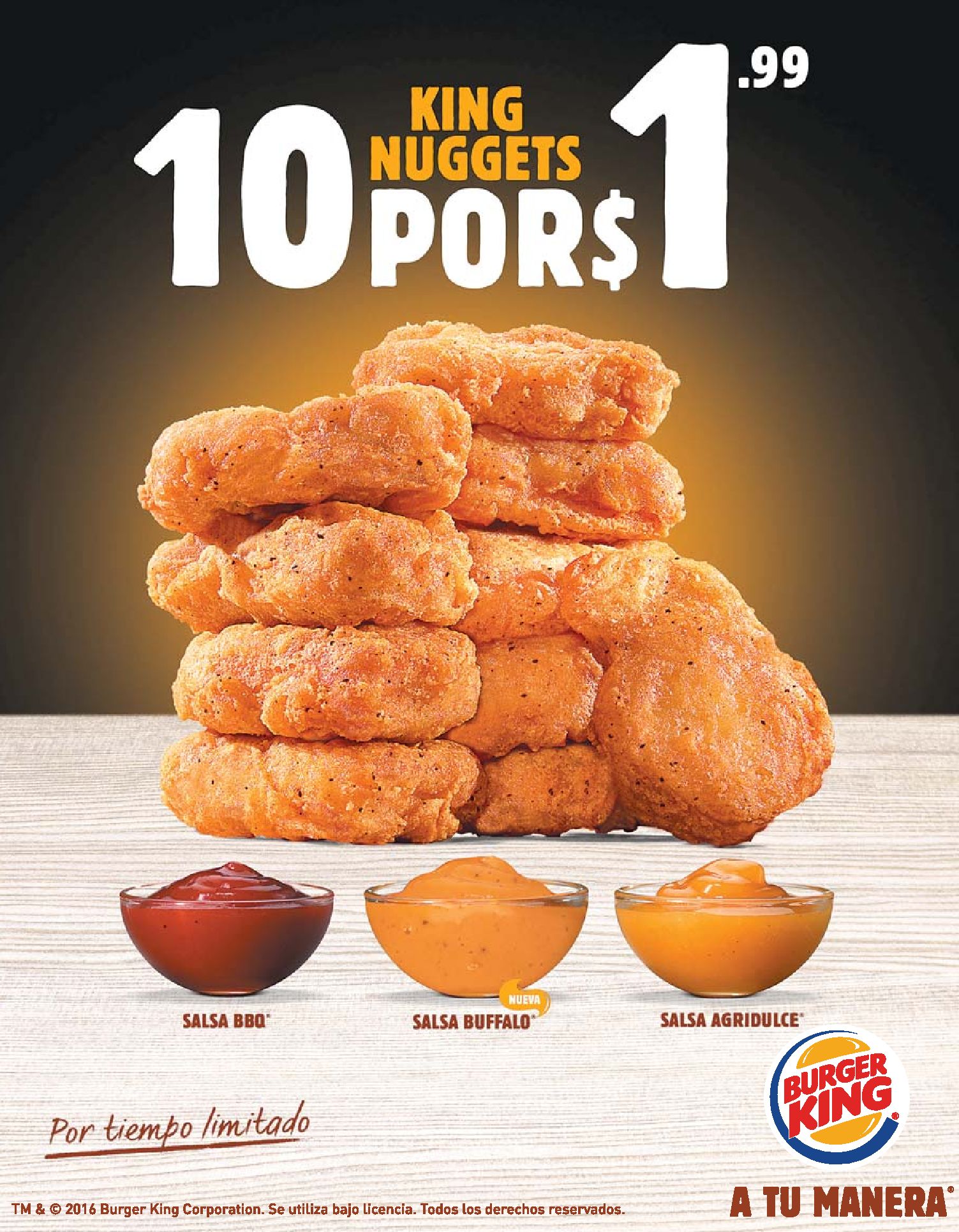 Nuevos KING NUGGETS 10 deliciosos de pollo con tu salsa preferida.