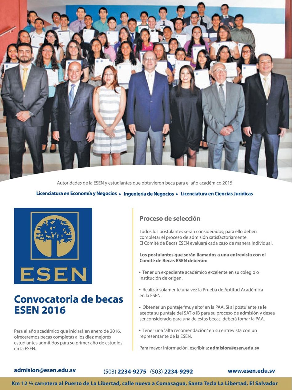 Convocatorias de BECAS ESEN 2016 elsalvador