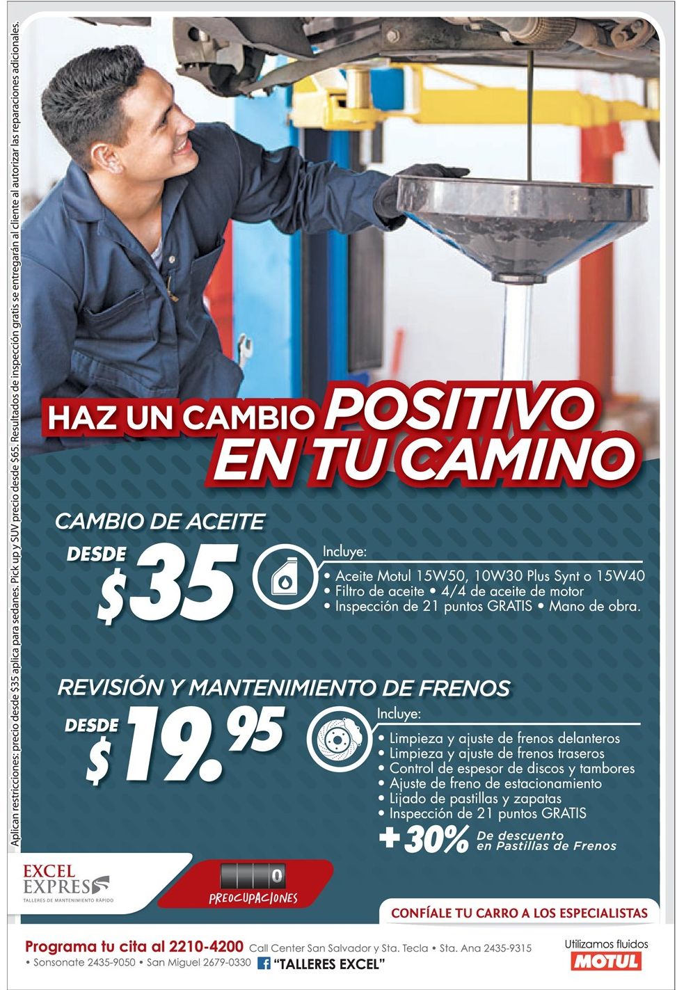 Promociones para tu carro cambio de aceite y revision de frenos – 20abr15