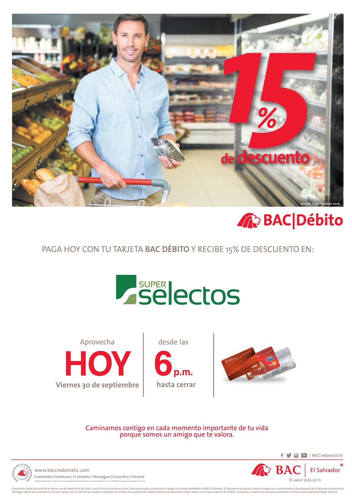 HOY15 off al pagar tu cuienta del super con BAC el salvador.