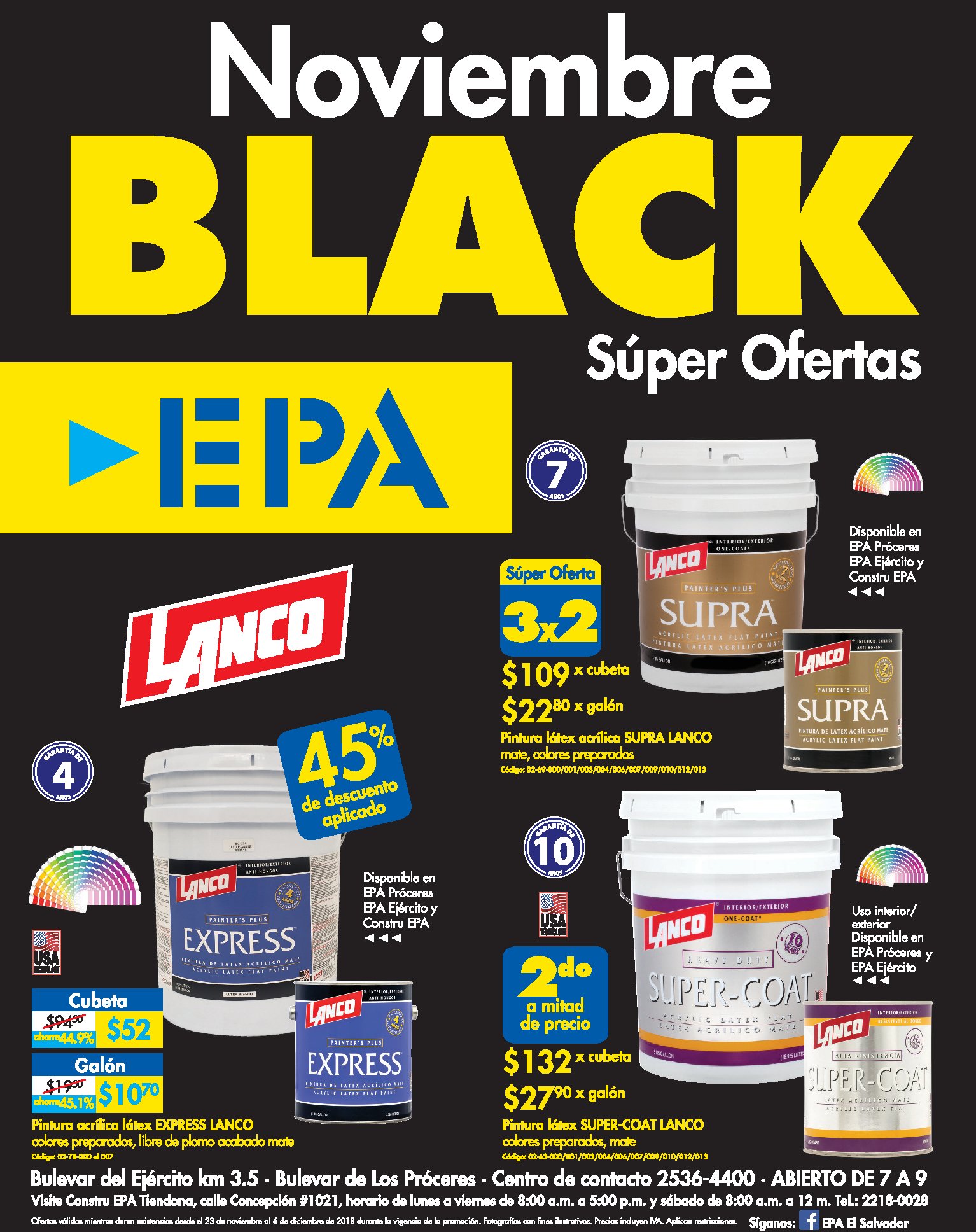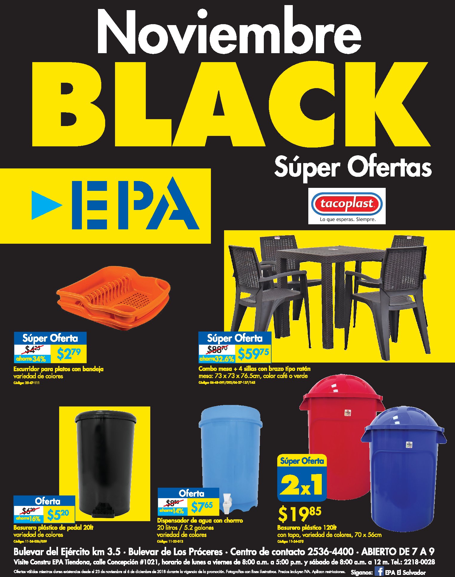 ¡Las Súper Ofertas Black llegaron a EPA! Tenemos increíbles ofertas que puede aprovechar en las sucursales de Los Próceres y Bulevar del Ejército. Vea todas las ofertas en la web Promociones válidas desde 23 de noviembre hasta el 6 de diciembre de 2018 o hasta agotar existencias. Restricciones aplican.