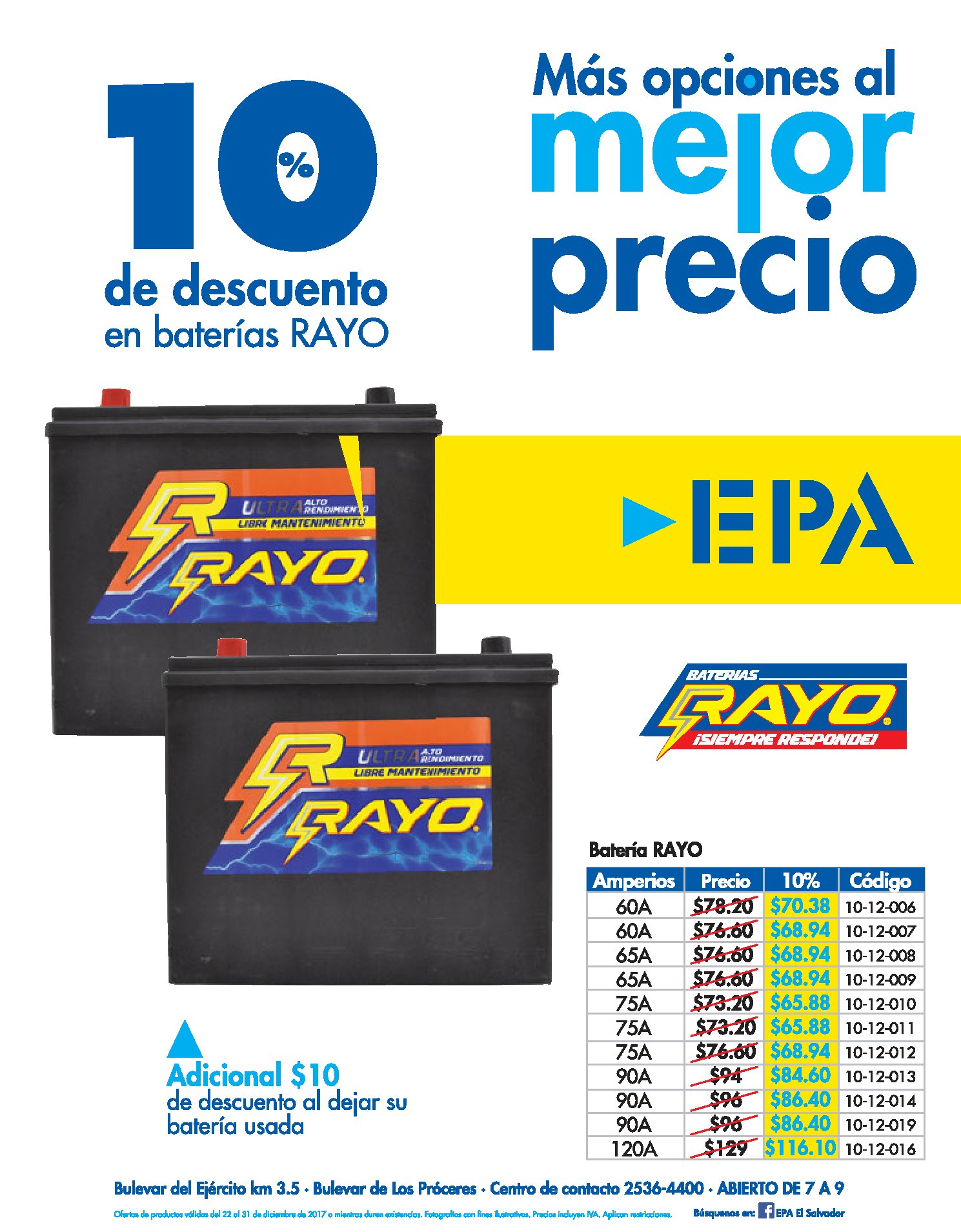 - EPA Descuentos en las bateria para carros RAYO el salvador
