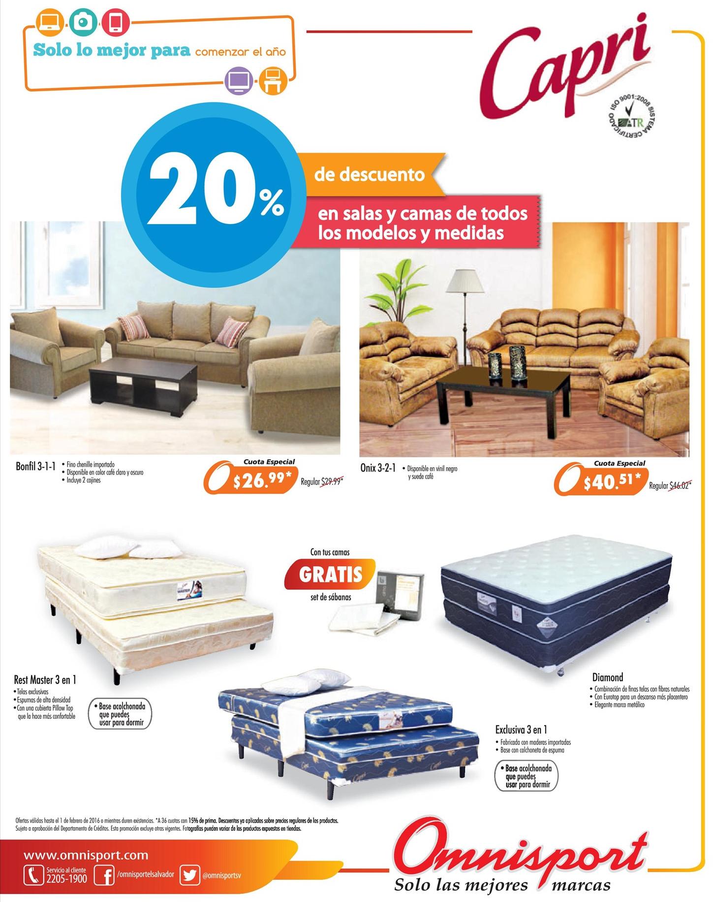 CAPRI camas y salas con 20 off almacenes OMNISPORT – 29ene16
